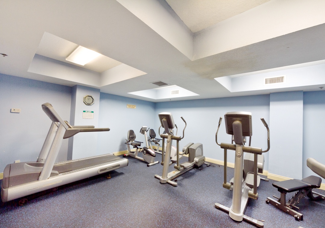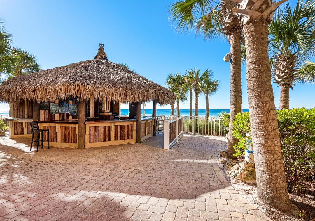 * Beachside free-form pools, Tiki Bar and Grill, covered parking, and fitness room.