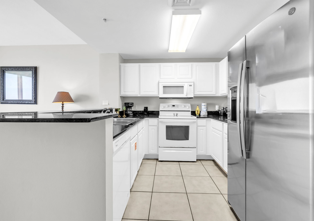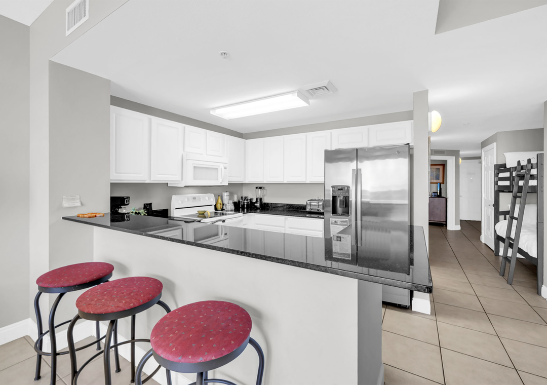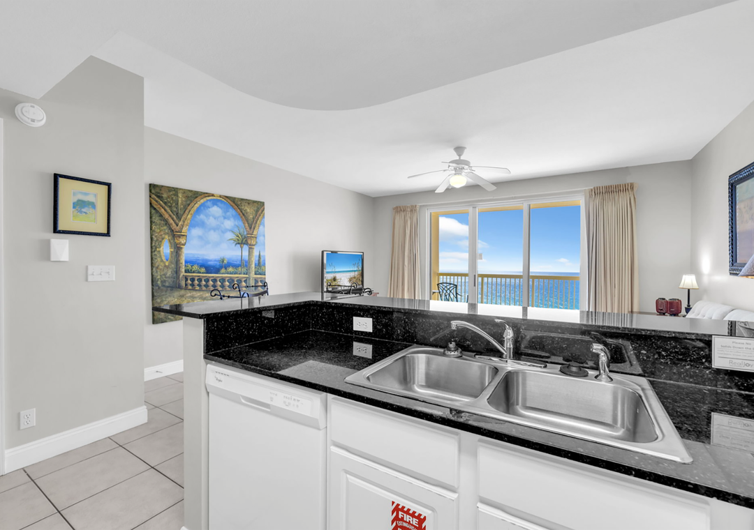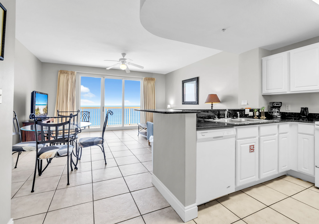 Welcome to Calypso 2-2207W! Step into coastal comfort at Calypso 2-2207W, a beautifully appointed one-bedroom, two-bath condo designed with a breezy Floridian charm. From its elegant tile floors to its stunning Gulf-front views, this unit sets the stage for a vacation as laid-back or action-packed as you choose. The fully equipped kitchen features sleek granite countertops and a convenient eat-in bar—perfect for morning coffee or casual meals. Both bathrooms are equally stylish with granite vanity tops, adding a touch of luxury to your stay.