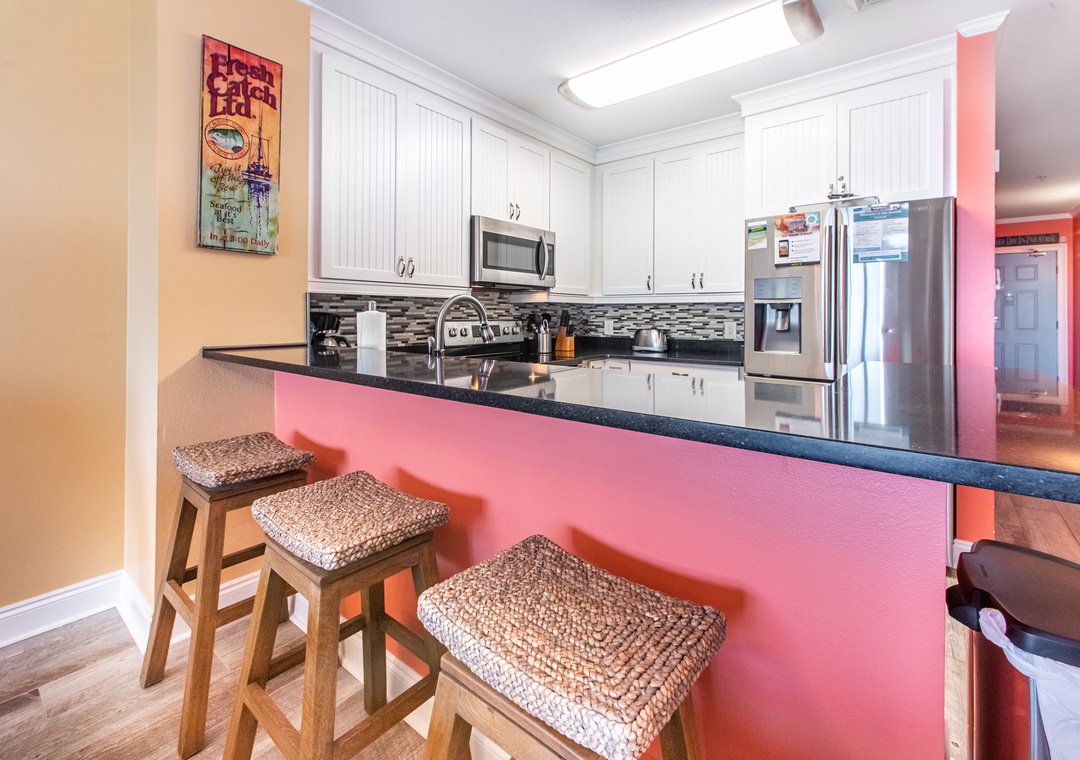 We loved this condo!! The location, the view, the remodel and the cleanliness was all wonderful . The only thing negative was the ice maker in the fridge did not work but we just grabbed some bags of ice .