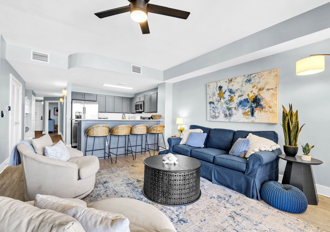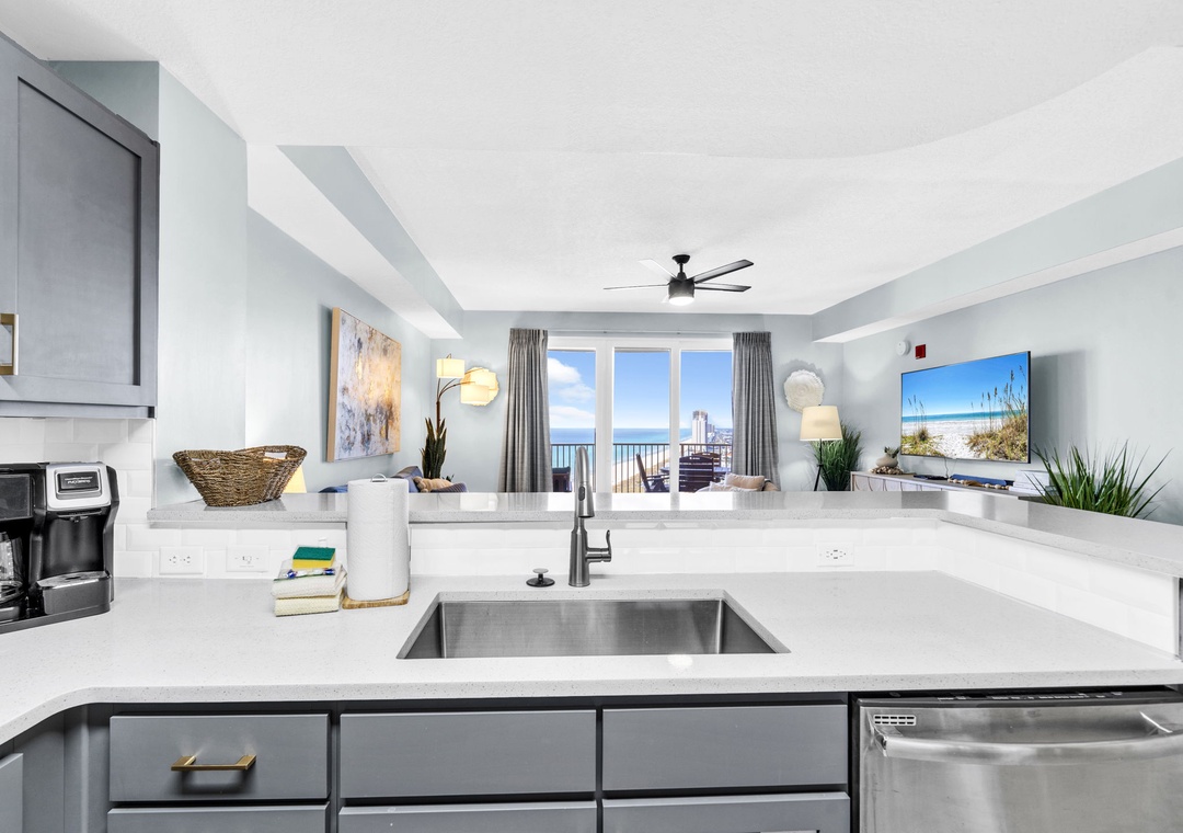 Welcome to Calypso 3-2003 - Sunset Bliss, a dreamy retreat! Dive into the coastal bliss of this charming 1 Bedroom plus Bunk, 2 Bathroom condo nestled within the newly constructed Calypso Tower III. Picture yourself basking in the sun-kissed open floor plan adorned with stylish LVP flooring and fresh beach-inspired furnishings. Let the awe-inspiring beach vistas captivate your senses as you relax on your very own 20th floor balcony, a personal oasis overlooking paradise. Calling all culinary enthusiasts! Prepare to be WOW'd by the upgraded kitchen, adorned with luscious granite countertops and gleaming stainless-steel appliances, perfect for whipping up delightful seaside feasts. This enchanting condo comfortably accommodates up to 6 guests, ensuring ample space for everyone. Unwind in the King master bedroom, or retreat to the cozy hallway nook, featuring a delightful twin-over-twin bunk bed. Need extra room? The Queen sleeper sofa in the living room awaits, providing a plush haven for relaxation. Let the panoramic views of the shimmering coastline greet you every morning from your private balcony. If you're seeking ultimate indulgence, why not rent one of the fabulous poolside cabanas? Whether you choose to lounge by the pool or explore the wonders of the beach, one thing is certain: your vacation at Calypso 3-2003 will be truly unforgettable!
