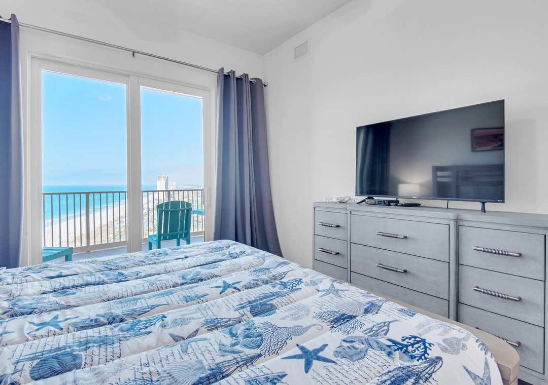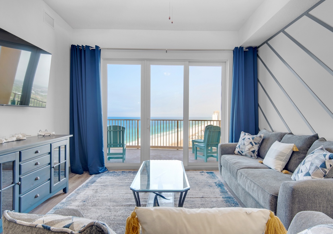 Calypso 3-2307 is a brand new TOP FLOOR 3-bedroom, 2 bathroom condo located in Panama City Beach within the newly constructed Calypso Tower III. You will love the open floor plan, boasting all-new appliances and furniture throughout. Enjoy incredible beach views from your private top-floor balcony. The chef in your group will love the updated kitchen featuring granite countertops and new stainless steel appliances. There is also a washer/dryer for additional convenience. This condo comfortably sleeps 10 with a King master bedroom (ensuite bath), a King guest room, a bunk room with a Twin over Full bunkbed, and 2 sleeper sofas in the living room. Enjoy spectacular views from your private balcony or rent one of the poolside cabanas; whatever you decide to do, you will have an unforgettable vacation at Calypso 3-2307.