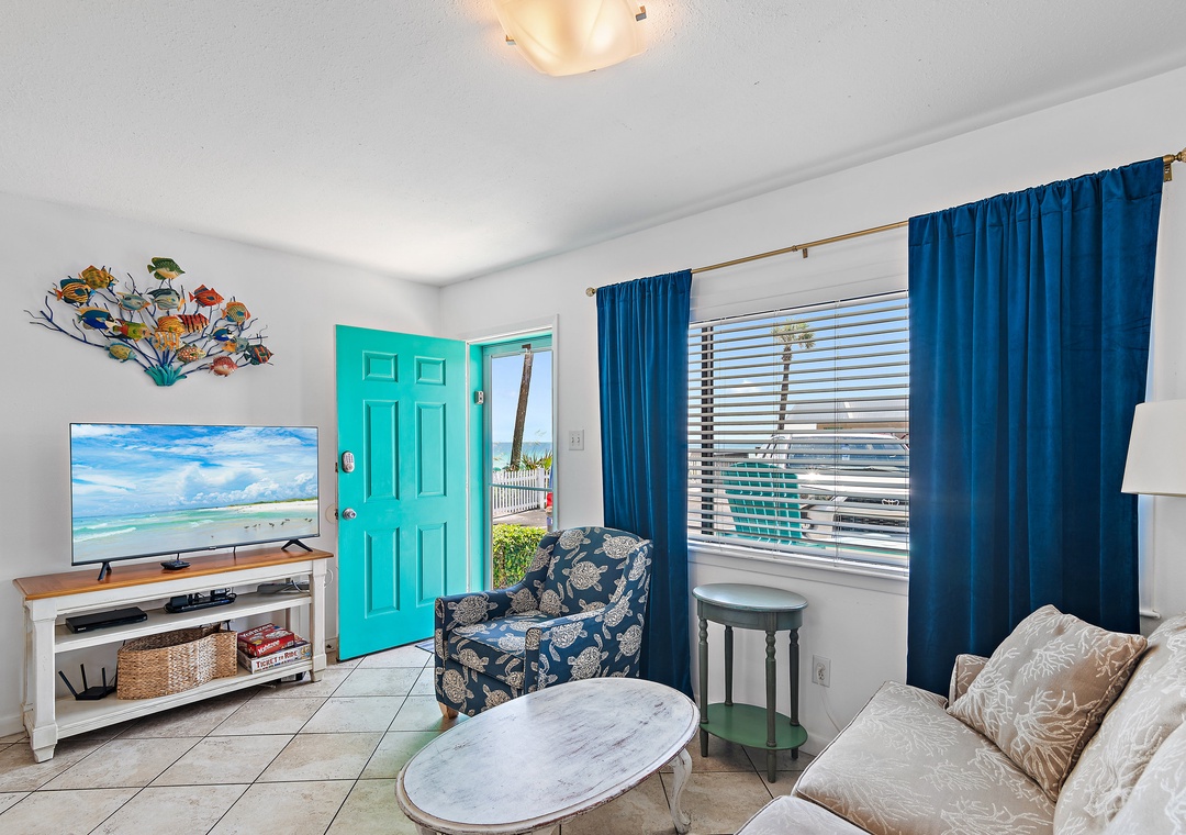 Escape to Capri by the Gulf 106, a charming 1-bedroom, 1-bathroom condo perfect for a relaxing getaway. The property sits on 300 feet of beach in the heart of Crystal Beach. The gated community helps guests feel a sense of privacy and safety while minimizing traffic to the beach. Sip your morning coffee while listening to the soothing sound of the waves gently crashing on the shore. The fully equipped kitchen is ready for you to prepare a delicious meal, and the cozy bedroom boasts a king-size bed for a restful night’s sleep. The living room offers a queen sleeper sofa, comfortably accommodating up to 4 guests. After a day of sunshine and fun, unwind with a movie in the living room with your loved one. Start creating unforgettable memories at Capri by the Gulf 106 today!