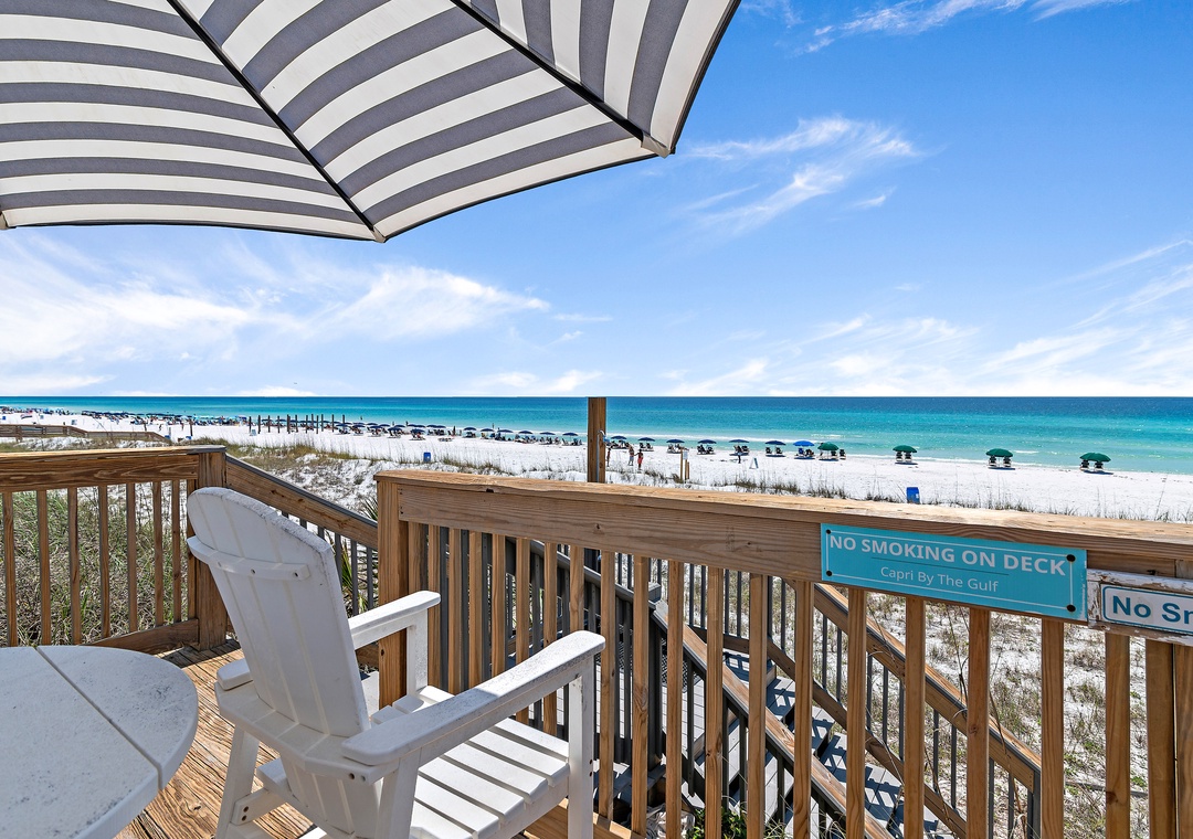 My husband and I come down a week early to the Capri before our daughters, sons-in-laws and five grandchildren join us at a larger place for their spring break. We love our week at the Capri! The pictures are accurate-nothing fancy, but the view is all you need! Down the steps and you’re on what feels like a private beach. We have used Harmony Beach Vacation Rentals for several years now. They have lots of properties and are always helpful and professional. Enjoy beautiful Destin!- Reviewed On: 4/12/2021