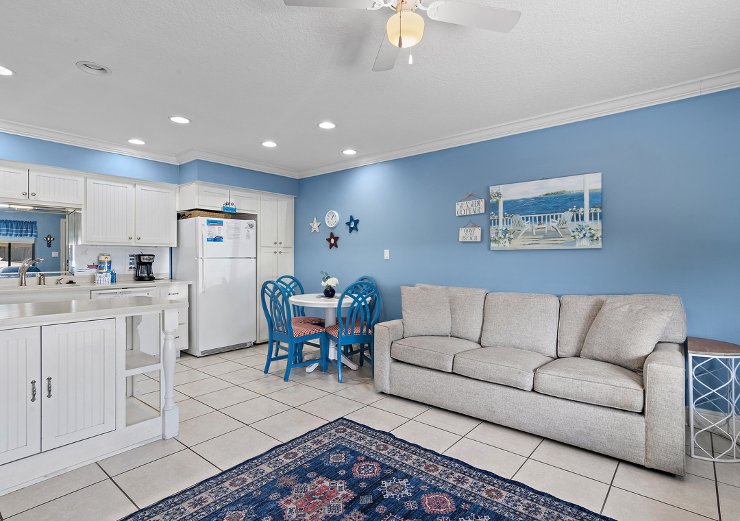 Escape to Capri by the Gulf 112, a charming 1-bedroom, 1-bathroom condo perfect for a relaxing getaway. The property sits on 300 feet of beach in the heart of Crystal Beach. The gated community helps guests feel a sense of privacy and safety while minimizing traffic to the beach. Sip your morning coffee while listening to the soothing sound of the waves gently crashing on the shore. The fully equipped kitchen is ready for you to prepare a delicious meal, and the cozy bedroom boasts a king-size bed for a restful night’s sleep. The living room offers a queen sleeper sofa, comfortably accommodating up to 4 guests. After a day of sunshine and fun, unwind with a movie in the living room with your loved one. Start creating unforgettable memories at Capri by the Gulf 112 today!
