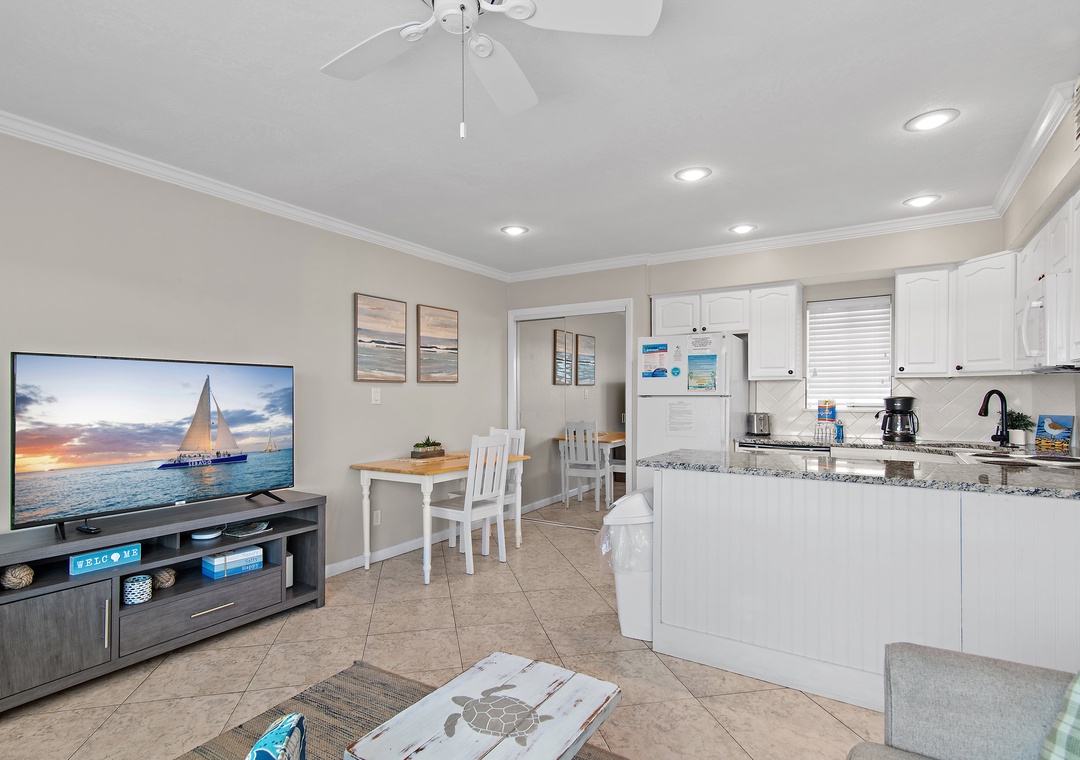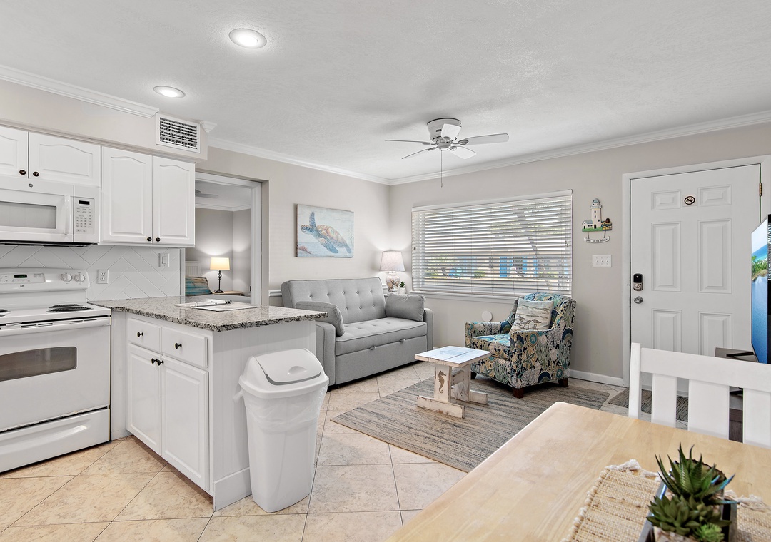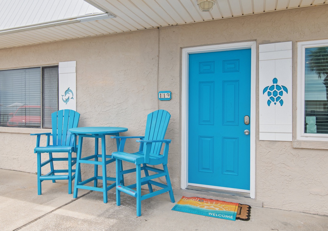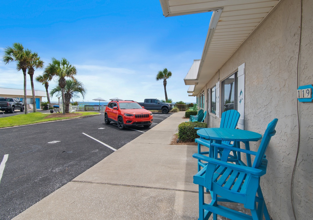 We LOVED and very much appreciated the updates! We have stayed in 119 many times and had always wished there was a door to the bedroom. The new door is great! It still allows for air circulation with the vents but provides privacy. The new coffee table and end table are also awesome. So much sturdier and look great too. Also loved the new Keurig! Thank you for sharing this little spot of heaven. Our family looks forward to it each year. When we arrive, we say "We're home!" :)- Reviewed On: 6/5/2020