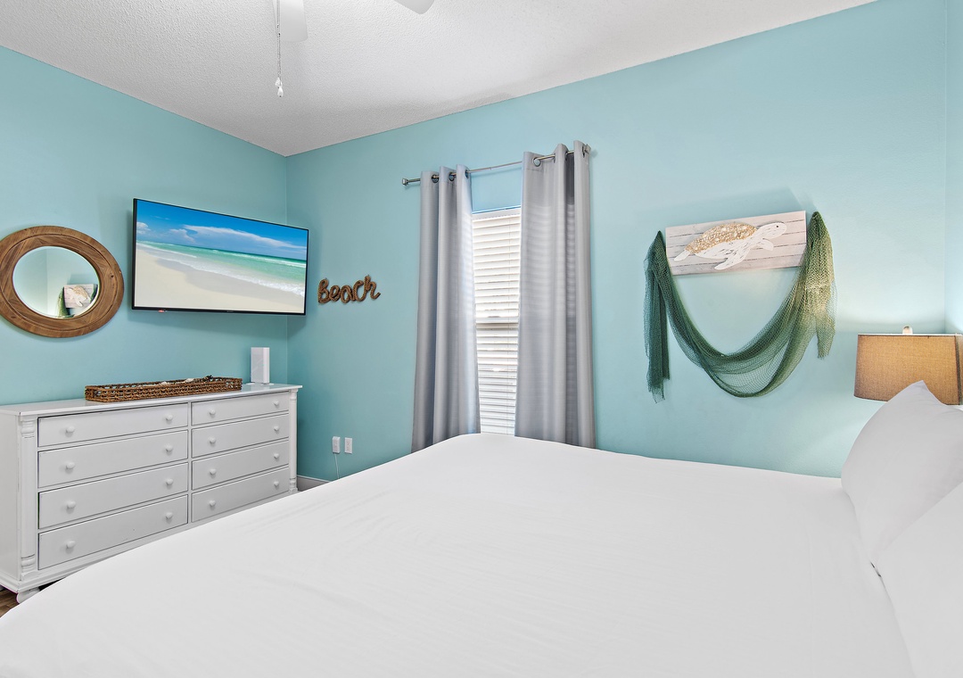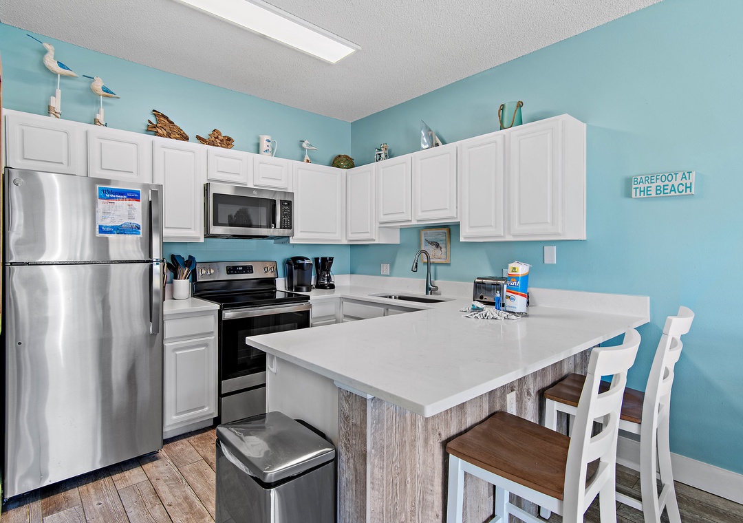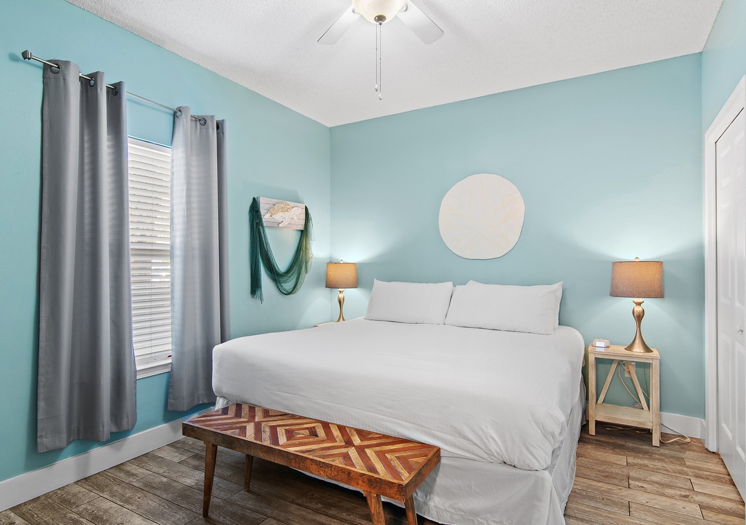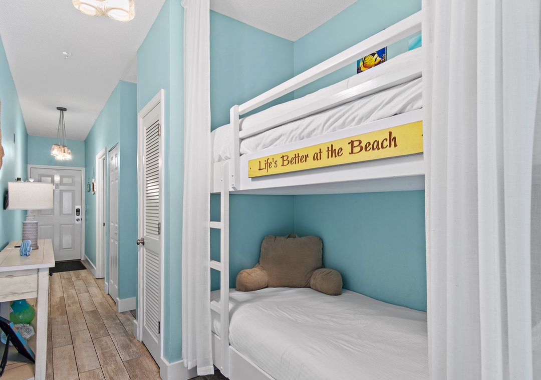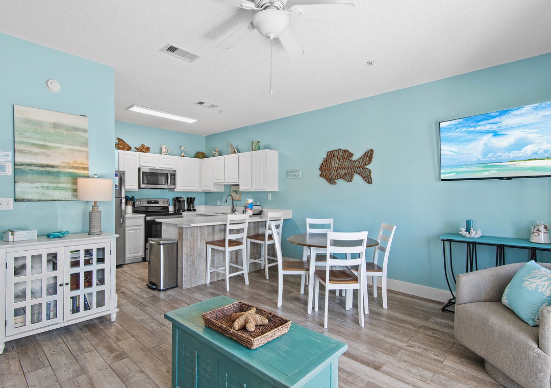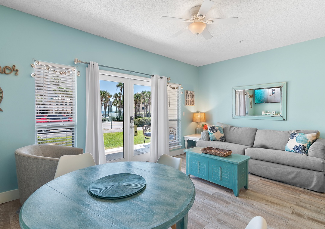 Welcome to Caribbean Dunes 105, a charming 1-bedroom, 1-bath ground-floor condo that comfortably sleeps up to 6 guests. This beachy retreat features a king bed in the master, twin-over-twin hallway bunks, and a sleeper sofa in the living room—perfect for families or a small group. Step outside to your private patio with peek-a-boo Gulf views, just steps from the sugar-white sands of Crystal Beach. Inside, enjoy the coastal decor and a fully equipped kitchen with stainless steel appliances, ideal for preparing meals after a day by the ocean. Caribbean Dunes 105 also offers access to a community pool, hot tub, and BBQ area, making it an ideal spot for a relaxing beach vacation.