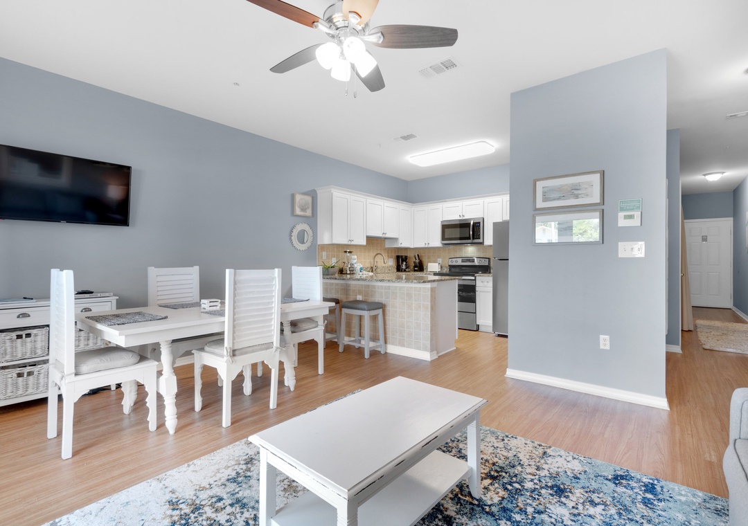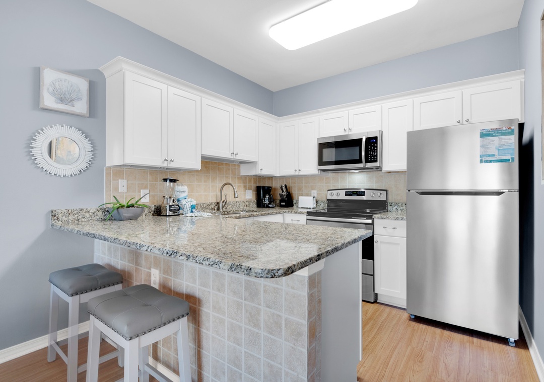 The condo was very clean and the wood flooring gave it a warm feel while still maintaining the beach vibe. Loved the decor. It's a great layout and everyone can have their space. We loved walking across the street to the beach and the neighborhood coffee shop is so charming and is right around the corner.- Reviewed On: 1/4/2022