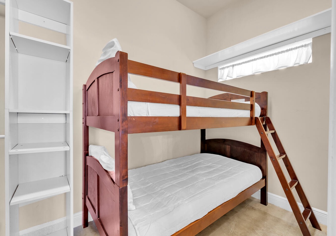 As another review states, please note that the bunk beds are in the closet of the master bedroom. Said closet is in the master bath.