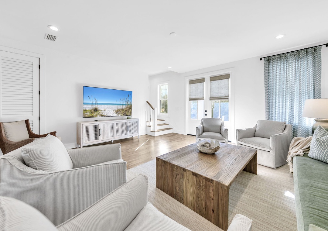 Welcome to Casa de Cousins – Your Home Away from Home! Step into coastal comfort at Casa de Cousins, a beautifully designed and newly constructed 5-bedroom, 4.5-bath retreat that offers the perfect blend of relaxation and style. With its calming beach-inspired aesthetic, this spacious home invites you to unwind the moment you walk through the door. The first floor features an open-concept layout, ideal for quality family time. The living room, dining area, and fully equipped kitchen flow seamlessly together, with a half bath for convenience. Step out onto the back porch, which opens to a peaceful green space and walking path, a serene setting for sunrise coffee or a sunset cocktail. Upstairs on the second floor, you’ll find the laundry room, a cozy bunk room with a twin-over-twin bunk bed, and two master suites, each with a king bed and a private ensuite bathroom perfect for added comfort and privacy. The third floor offers even more space to spread out, including a guest bedroom with a king bed and another guest room featuring two full-over-full bunk beds, both with their own ensuite bathrooms. A large third-floor deck completes the space, ideal for sipping your morning brew or winding down with an evening drink. With room to sleep 16 guests comfortably, Casa de Cousins is the perfect backdrop for unforgettable beach vacations. Create cherished memories and start a new family tradition at this relaxing coastal getaway!