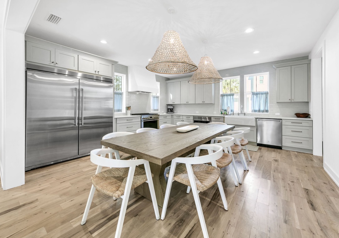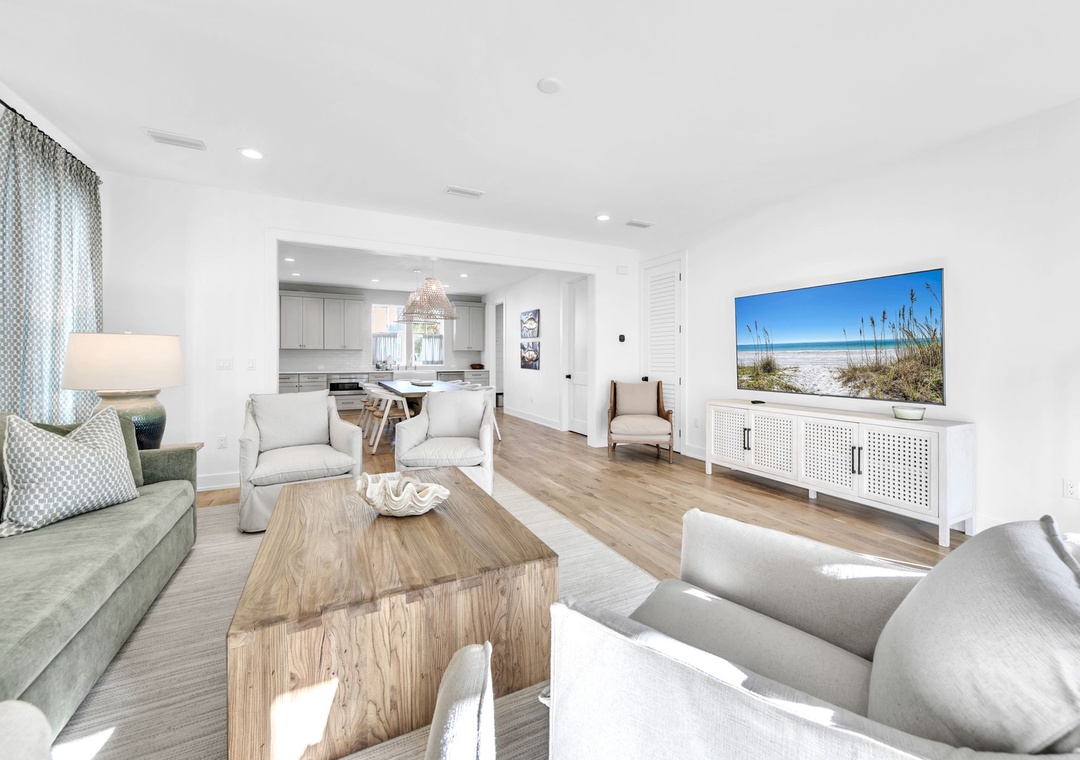 Welcome to Casa de Cousins – Your Home Away from Home! Step into coastal comfort at Casa de Cousins, a beautifully designed and newly constructed 5-bedroom, 4.5-bath retreat that offers the perfect blend of relaxation and style. With its calming beach-inspired aesthetic, this spacious home invites you to unwind the moment you walk through the door. The first floor features an open-concept layout, ideal for quality family time. The living room, dining area, and fully equipped kitchen flow seamlessly together, with a half bath for convenience. Step out onto the back porch, which opens to a peaceful green space and walking path, a serene setting for sunrise coffee or a sunset cocktail. For added convenience, the home is also equipped with an electric vehicle charger, making it easy for guests with EVs to recharge during their stay. Upstairs on the second floor, you’ll find the laundry room, a cozy bunk room with a twin-over-twin bunk bed, and two master suites, each with a king bed and a private ensuite bathroom perfect for added comfort and privacy. The third floor offers even more space to spread out, including a guest bedroom with a king bed and another guest room featuring two full-over-full bunk beds, both with their own ensuite bathrooms. A large third-floor deck completes the space, ideal for sipping your morning brew or winding down with an evening drink. With room to sleep 16 guests comfortably, Casa de Cousins is the perfect backdrop for unforgettable beach vacations. Create cherished memories and start a new family tradition at this relaxing coastal getaway!