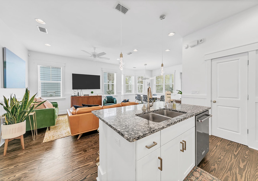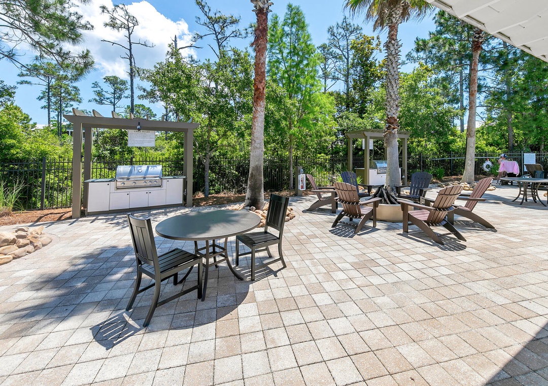 NatureWalk’s “Gathering Place” boasts a large zero-entry pool, a heated lap pool, hot tub, lounge chairs, tables and chairs, a shaded kiddie pool, hammocks, playground, outdoor kitchen with gas grills, and gas fire pit for family enjoyment. You will also find volleyball courts, pickleball courts, basketball, and another playground nearby.
