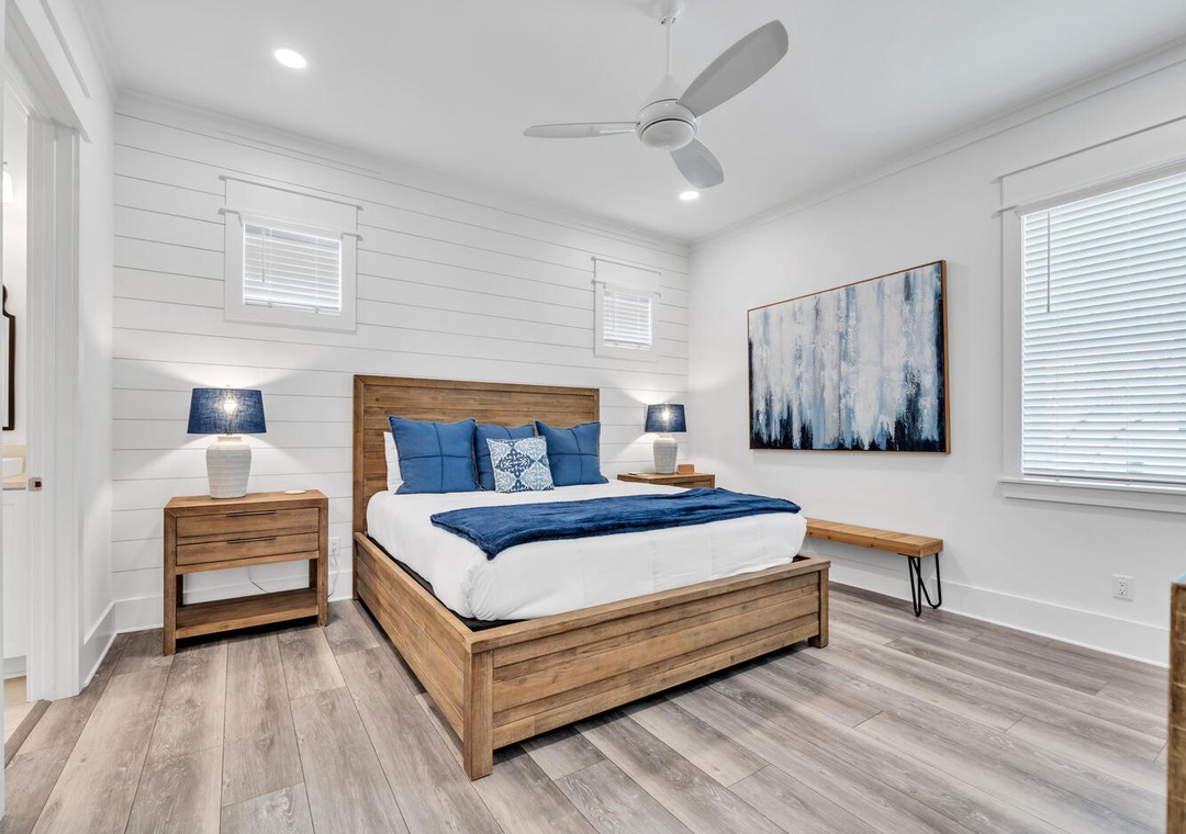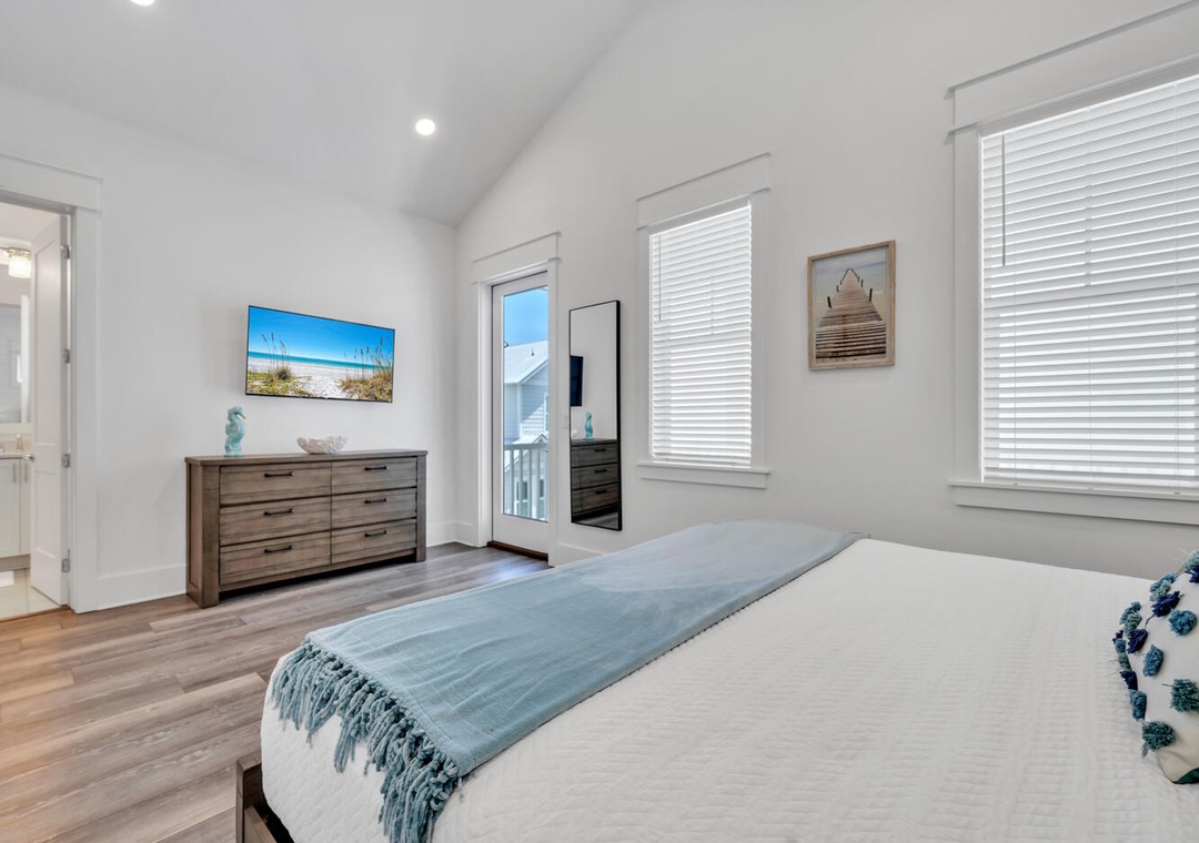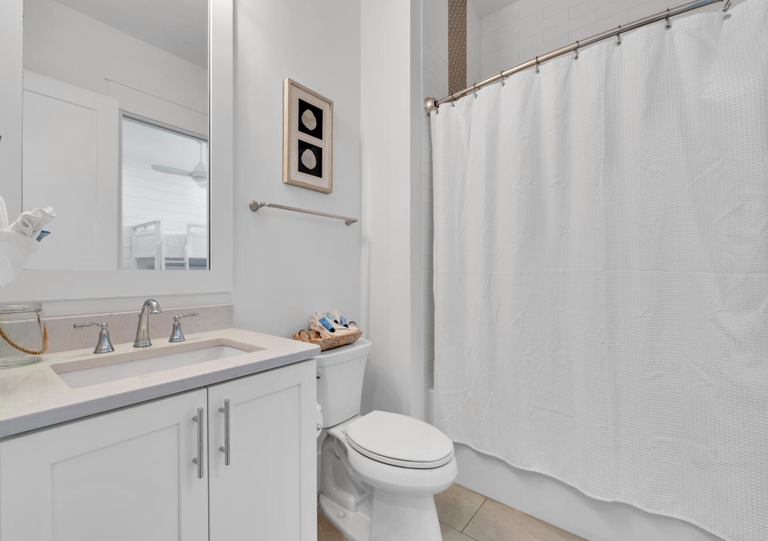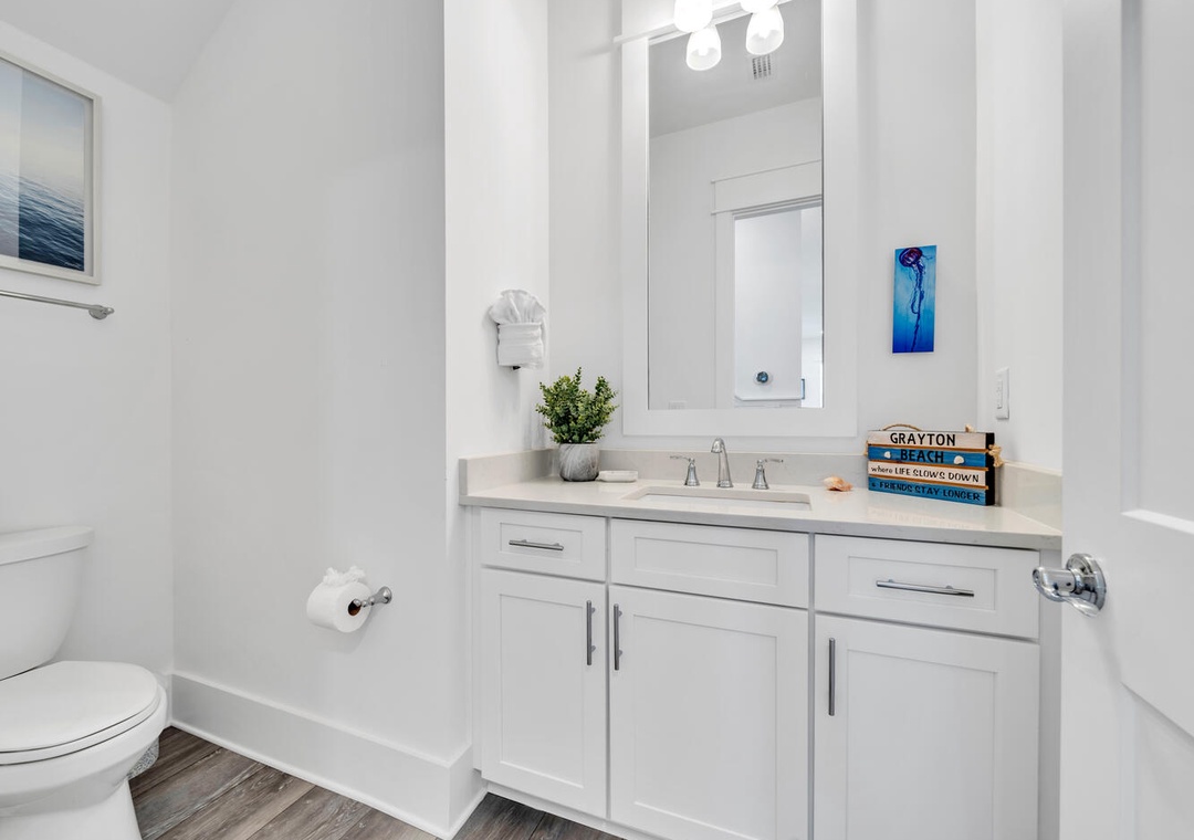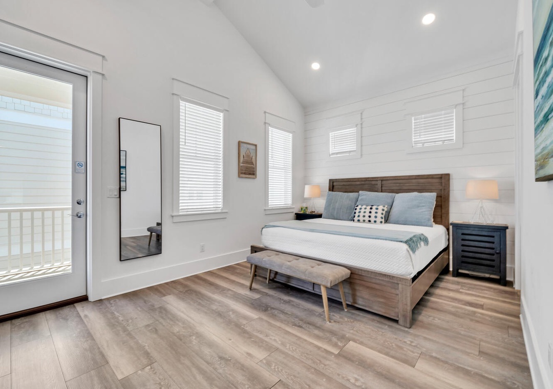 Welcome to Casita Grayton, a stunning 4-bedroom, 3.5-bath home that comfortably sleeps 9 guests. From the moment you arrive, you'll be welcomed by a charming entrance that sets the tone for the coastal elegance and beauty that defines this home. The first floor features an open-concept living and entertainment area, complete with a fully equipped kitchen. It also includes the first king master bedroom and a luxurious bathroom with a walk-in shower and a large soaking tub—perfect for unwinding. A sleeper sofa in the living room offers additional sleeping space. On the second floor, you'll find the second king master bedroom, complete with a private ensuite bathroom, walk-in shower, and a spacious balcony where you can savor your morning coffee. The second floor also features a kid-friendly bunk room with a twin over full bed, ideal for play and games. Another bedroom on this level offers 2 twin beds, separated by a beautiful barn-style sliding door for added privacy. Relax on the porch or balcony or take a short stroll to the community pool just steps away. For your convenience, we have 2 beach chairs, an umbrella, and toys for your use in the garage. Start creating unforgettable memories at Casita Grayton today!