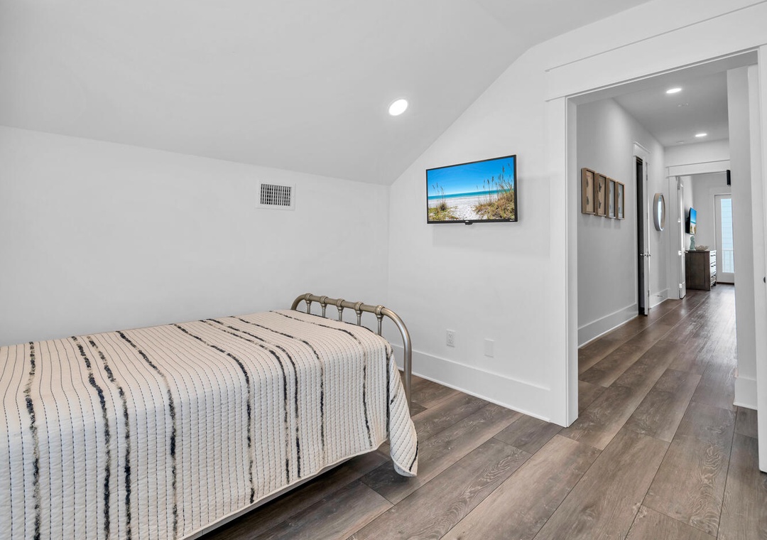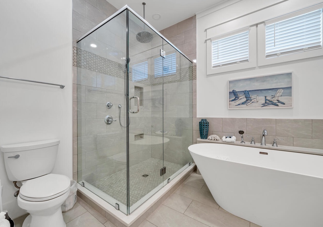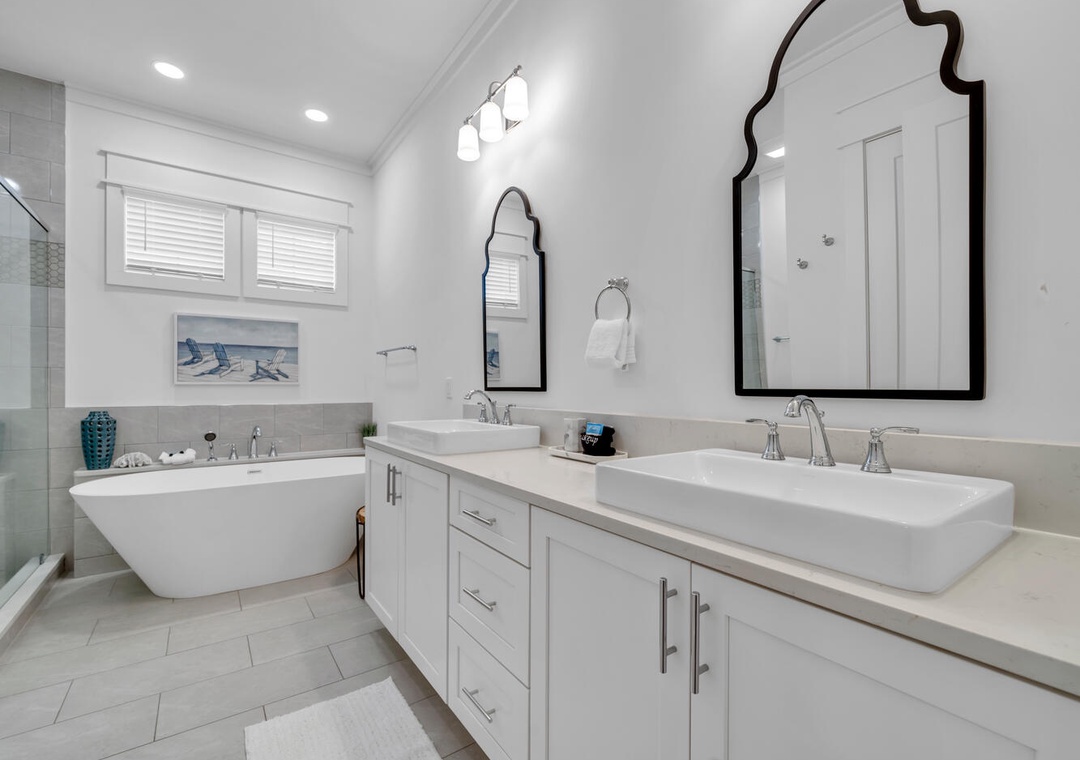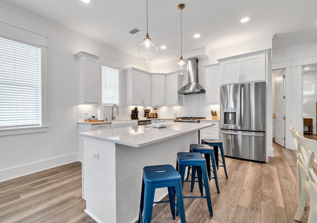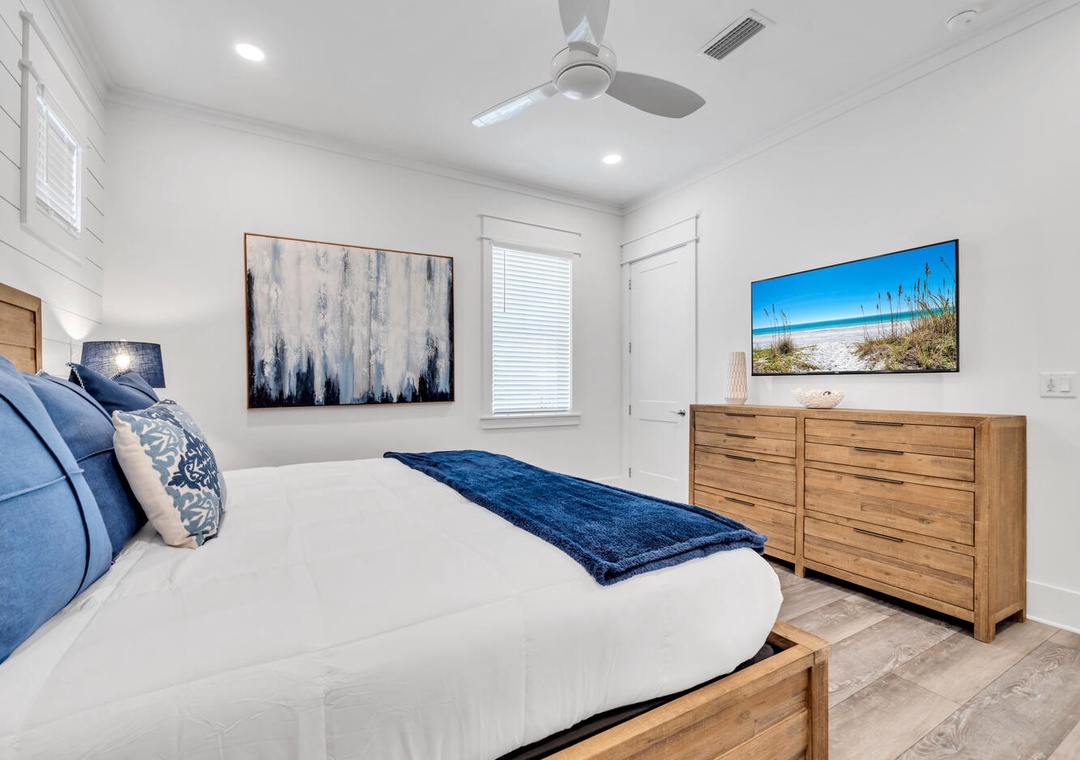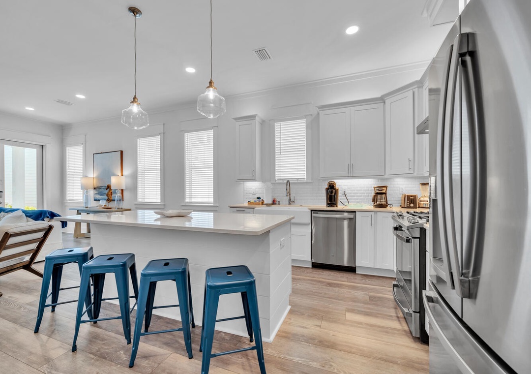 Welcome to Casita Grayton, a stunning 4-bedroom, 3.5-bath home that comfortably sleeps 9 guests. From the moment you arrive, you'll be welcomed by a charming entrance that sets the tone for the coastal elegance and beauty that defines this home. The first floor features an open-concept living and entertainment area, complete with a fully equipped kitchen. It also includes the first king master bedroom and a luxurious bathroom with a walk-in shower and a large soaking tub—perfect for unwinding. A sleeper sofa in the living room offers additional sleeping space. On the second floor, you'll find the second king master bedroom, complete with a private ensuite bathroom, walk-in shower, and a spacious balcony where you can savor your morning coffee. The second floor also features a kid-friendly bunk room with a twin over full bed, ideal for play and games. Another bedroom on this level offers 2 twin beds, separated by a beautiful barn-style sliding door for added privacy. Relax on the porch or balcony or take a short stroll to the community pool just steps away. For your convenience, we have 2 beach chairs, an umbrella, and toys for your use in the garage. Start creating unforgettable memories at Casita Grayton today!