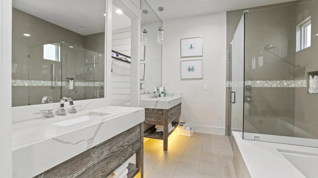 After a day of coastal adventures, retreat to the elegant primary suite featuring a plush king bed, spa-inspired en suite bath, and private balcony access. Additional guest rooms are thoughtfully appointed for comfort and privacy, including a cozy bunk room and a top-floor Murphy suite perfect for flexible sleeping arrangements.