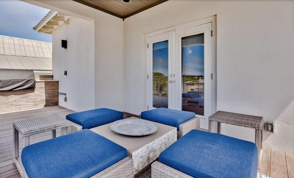 The private elevator can be requested for an additional $100/night. This makes moving between floors effortless, and the spacious rooftop terrace sets the stage for unforgettable evenings. Enjoy breathtaking sunsets from the roof top lounge, dine alfresco under the stars, or mix cocktails at the wet bar while listening to the waves in the distance.