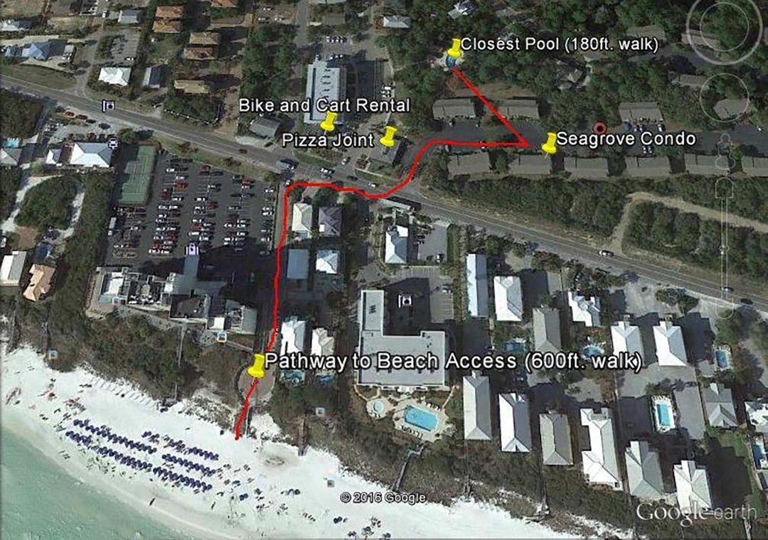 We loved our stay! The condo was perfect for our family of 4. Plenty of room to spread out and cook, comfortably decorated, comfortable beds, short drive to Seaside and Rosemary Beach, short drive to the grocery store. LOVED the 5 minute walk to the beach. We ordered food from a few of the restaurants close by (Perfect Pig, Brozinni's Pizza, Seagrove Village Market) and were very happy with our meals. We visited the ice cream shop and 30A Outlet quite a bit. We never used the bikes because our kids are too young but they would be great if you wanted to ride around. The only suggestion I would make would be to include a few beach supplies with the rental. Umbrella and 2 chair rentals at the beach are $60-$75 per day which adds up quickly. We would stay here again and would definitely recommend the condo!- Reviewed On: 4/28/2022
