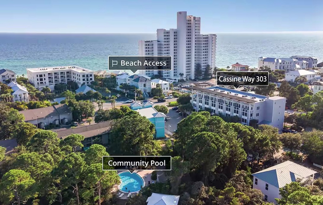 Cassine Station, although lower density, is part of the Cassine master development and offers on-site tennis courts, your choice of 2 pools, a nature trail through a native cypress forest, a pond, picnic areas, a basketball court, and a sunset viewing deck. It is within walking distance to many of Seagrove's most popular restaurants, a 5-minute bike ride to Seaside, and short walk to the beach. There are a few locally owned and operated businesses on the first floor including an ice cream shop, walk-in doctors' office, and more. Come getaway for a fabulous vacation at Cassine Way 303.