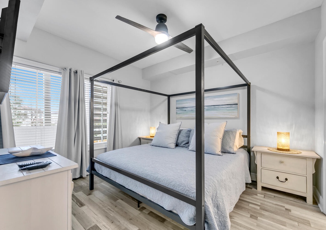 We had an absolutely amazing trip to Seagrove, and this condo was perfect! It was spotlessly clean with more than enough space and all the amenities & extras. You can see and hear the ocean right outside the front door, and the back balcony is very private and cozy. Also, the king sized bed is insanely comfortable! There are remote controlled ceiling fans throughout the unit, and extra linens in the bathroom closet. The decor is modern and clean but still very warm and inviting. The location is as convenient as it gets, literally a crosswalk away from the beach. Beach access has stairs as well as a ramp, which makes it super easy to access with carts/wagons/coolers, etc. There is a seafood place very close by that offers take-out seafood boils you can cook at home; they’re simple and delicious, highly recommend!