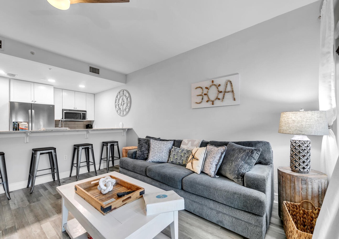 Welcome to Cassine Way 303 – Seagrove + Sunsets, a stunning condo at Cassine Station in Seagrove. One of the standout features of this property is the balcony where you can hear the soothing sound of waves crashing on the Gulf. As you step inside, you'll be welcomed by an open-concept living space, including the kitchen, dining area, living room, and balcony, all filled with an abundance of natural light. The beautiful master bedroom boasts a King bed, while the hallway features Twin over Twin bunk beds, and a sleeper sofa in the living room provides additional sleeping space. This condo comfortably accommodates up to 6 guests. Come experience this charming property in Seagrove and discover why guests return year after year to create lasting memories!