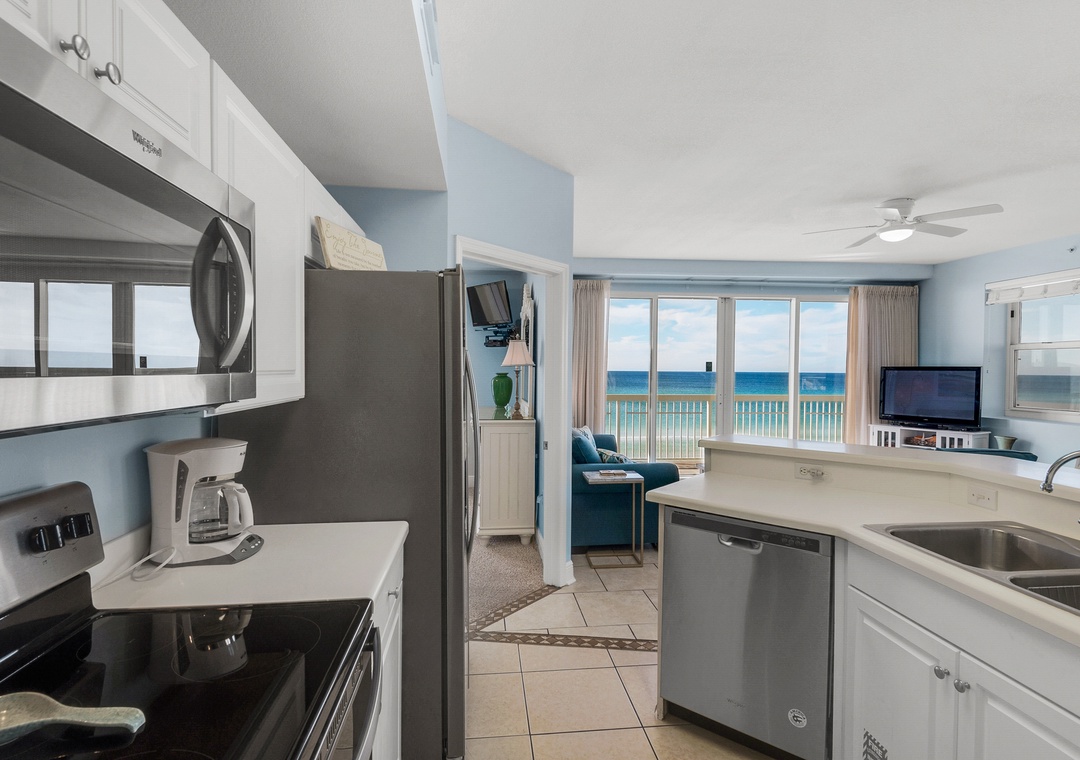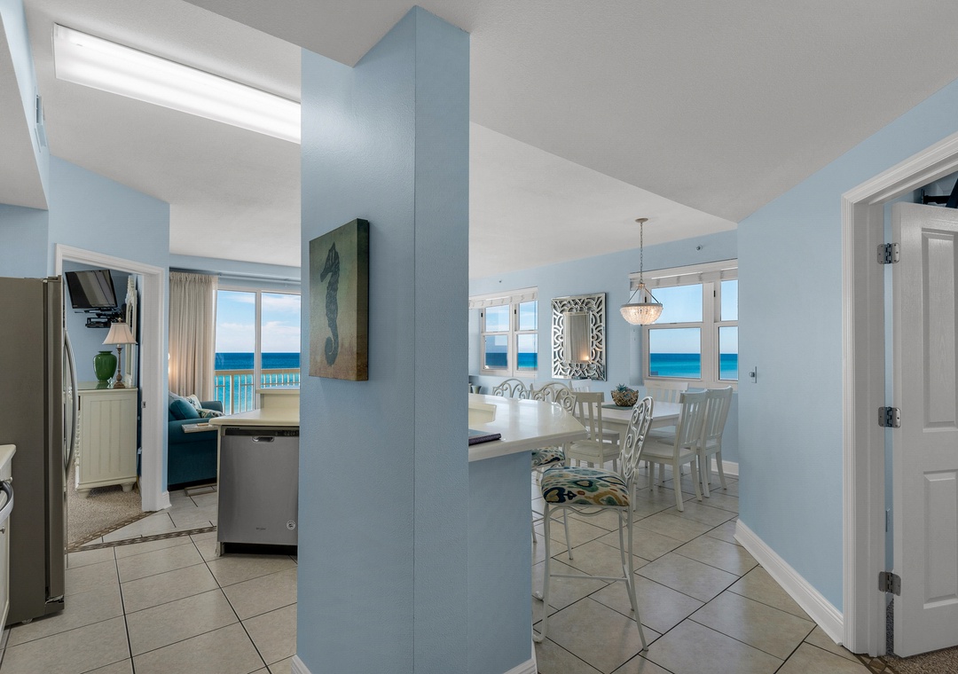 Great views from the balcony on the quiet end of PCB. Only real drawbacks (which wouldn’t be enough to stop us from staying again) is that the pool in the listing pics is street side not gulf front and the room needed a better cleaning (crumbs under bed, in kitchen floor, some counters still needed wiped down). We had a great time! No excessive waiting on elevators and the condo had everything we needed!- Reviewed On: 8/15/2022