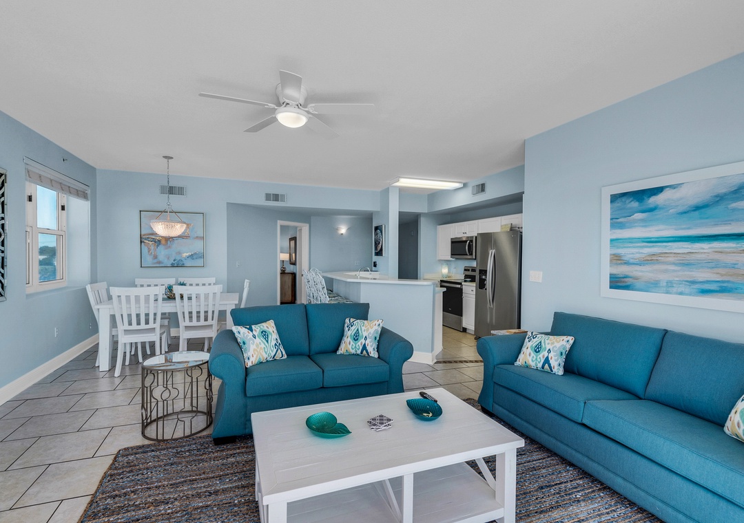The condo was what we expected it to be. It was clean and had all the necessary items you could need. The love seats had some stains, but it did not deter us from sitting and enjoying the view of the beach and water. It had a huge balcony with lots of seating, which we enjoyed. It could have used a small dining table and chairs to eat outside, instead of so many extra chairs. The view was perfect from the balcony. There was a problem with a few ants on the inside dining table, which I cleaned, but somehow they kept coming back. Never could figure out where they were coming from. We loved being able to spread out in the 3 bedrooms and all had bath’s attached. I would certainly stay here again.- Reviewed On: 8/27/2023