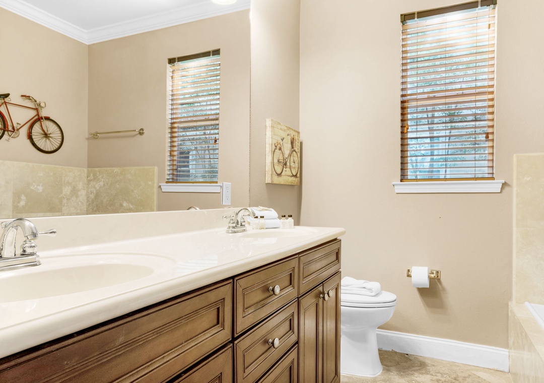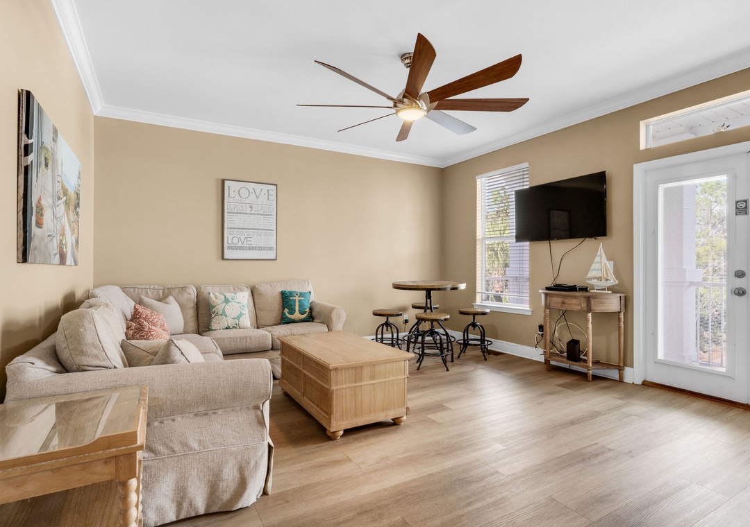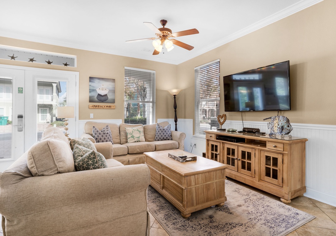 Villages of Crystal Beach is an exclusive, gated community only a few blocks from the beautiful blue waters and white sandy beaches of Destin. You can make the walk on foot or hop on the free seasonal trolley service (Memorial Day through Labor Day): they will even pick you up at the house and drop you off right at the beach! The pool area at Villages of Crystal Beach is a vacation must! The lagoon style zero entry pool is 30,000 square feet of gorgeous, sparkling clear water. There is a spa, tropical landscaping, and plenty of seating areas. It also has surround sound, a flat screen TV, and a grilling area to help you relax and unwind.