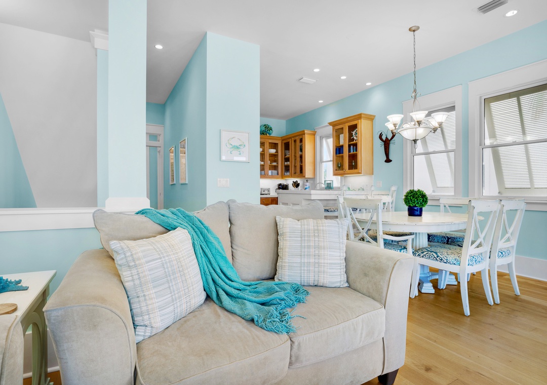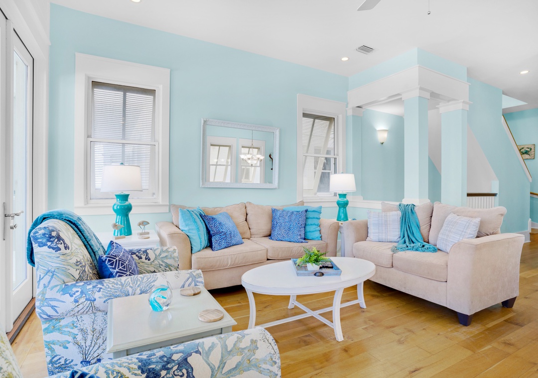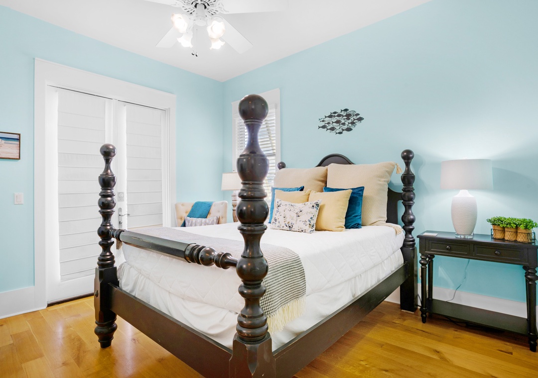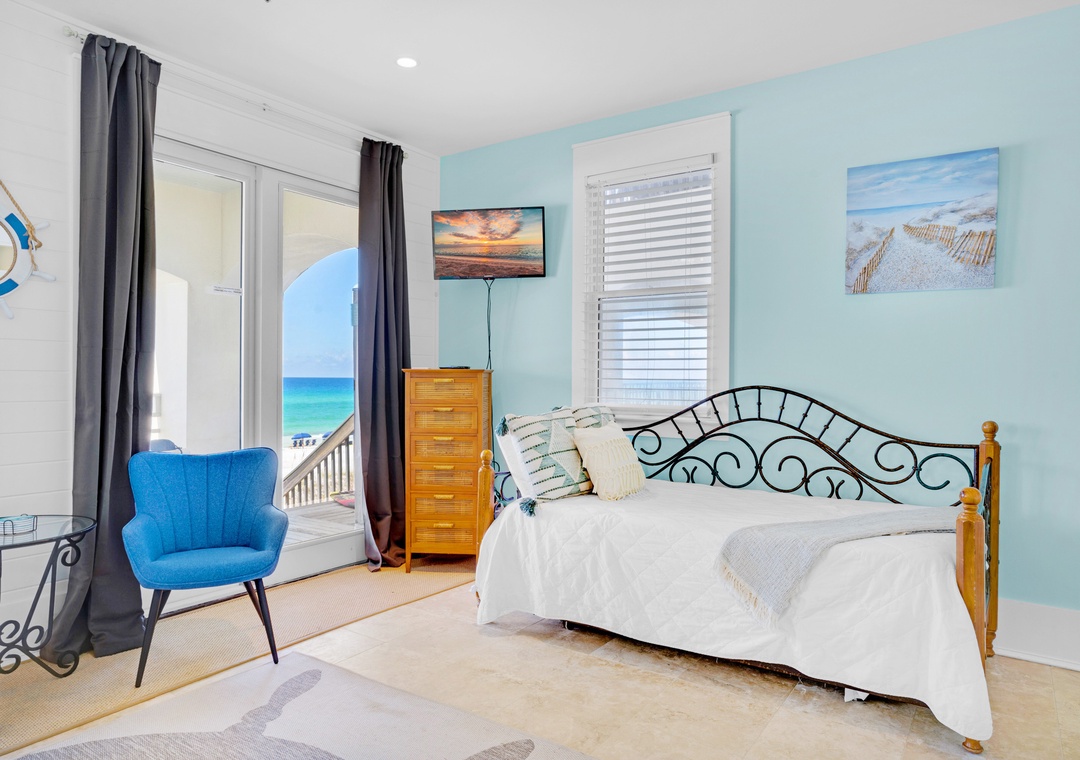 With 3 king bedrooms, a full bed, and a twin daybed with trundle, Charlie Boy sleeps up to 10 guests. Enjoy a fully equipped kitchen, private balconies overlooking the water, and your own staircase leading straight to the beach. After a day in the waves, rinse off in the solar-heated outdoor shower and unwind as the sun sets over the Gulf.