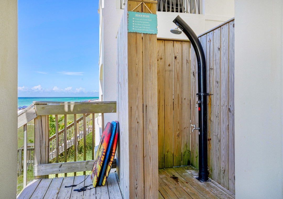 * Outdoor Shower with Solar Heated Water