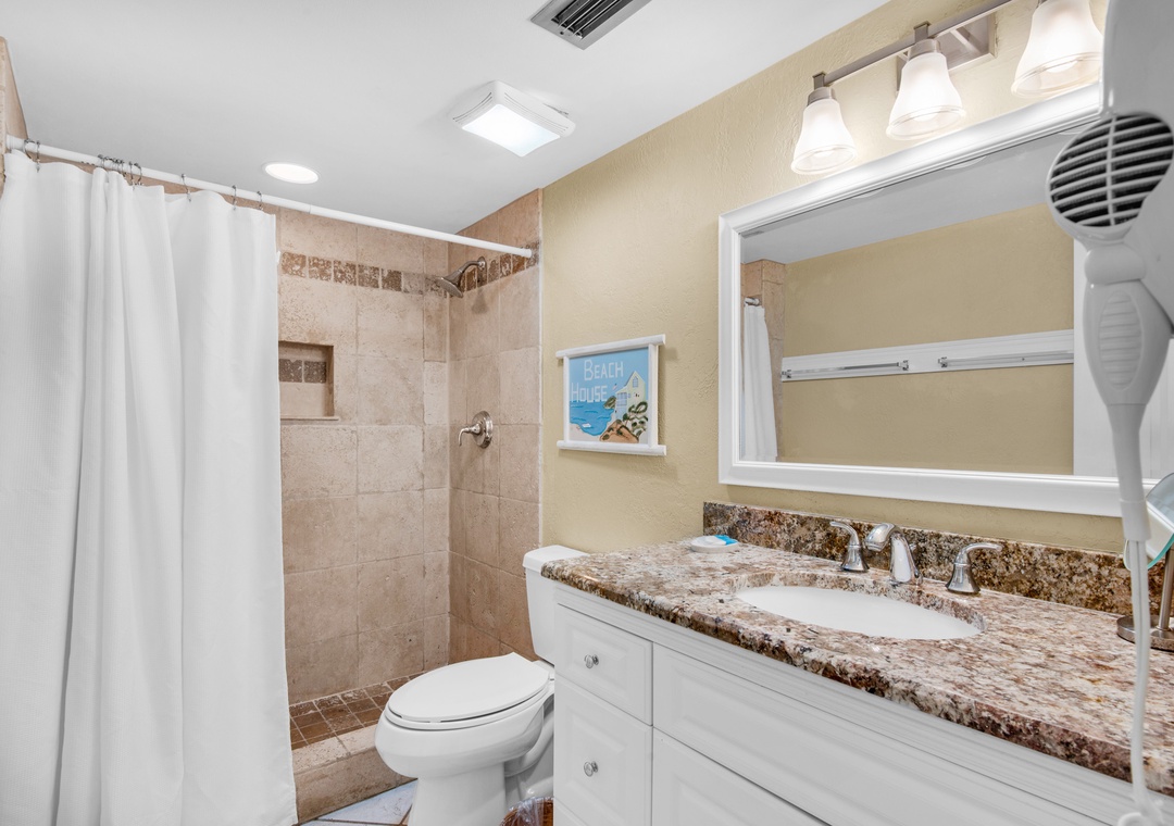 Amanda, Thank you for letting us know that you enjoyed your stay. We will pass along your comments regarding the hot water heater to the owner for their consideration. We are glad the location was convenient and you enjoyed being a stone’s throw from the beach. Thank you for choosing RealJoy.Real Joy staff
