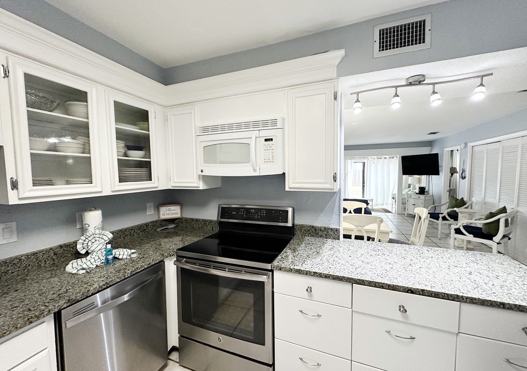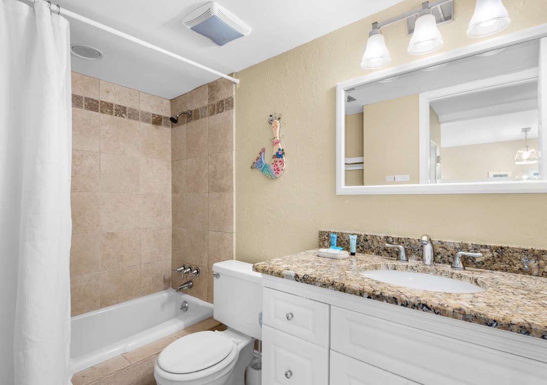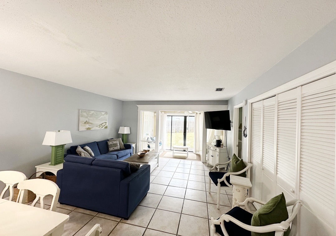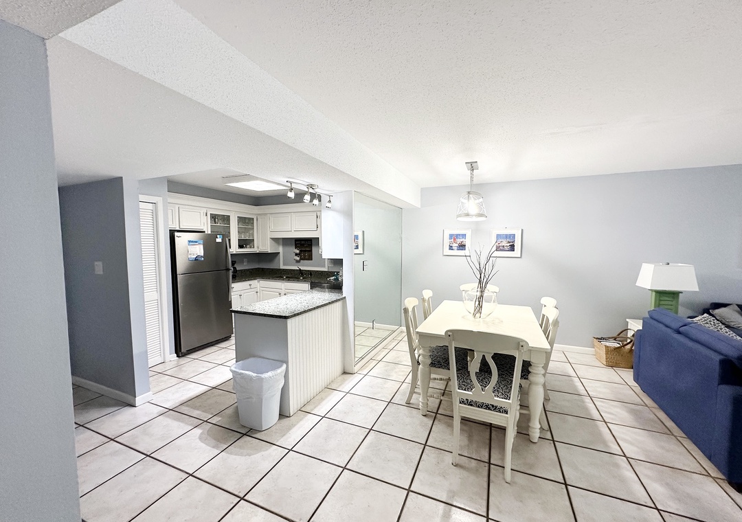 Enjoy the convenience and value of Chateau La Mer 5B. Just a short walk to gated beach access, this lovely ground floor condo has 2 bedrooms, 2 bathrooms and sleeps 6 guests comfortably. This condo is recently updated with a fully equipped kitchen with stainless steel appliances, granite counter tops, and a dining table that seats 6. There’s a king bed in the master bedroom and 2 full beds in the guest room. Chateau La Mer features a pool, tennis courts, outdoor grills, lawn area, clubhouse, and is located along a walking/bike trail! You'll love knowing you're getting the most out of your vacation dollars at Chateau La Mer 5B!
