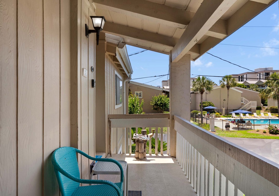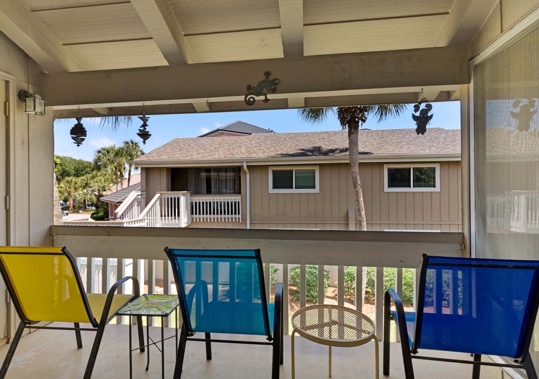 Experience the convenience and charm of Chateau La Mer 7D. Just a short stroll to the gated beach access, this delightful 2nd-floor condo features 2 bedrooms and 2 bathrooms, comfortably accommodating up to 8 guests. Enjoy views of the tennis courts and grill area from the covered back porch and take in the pool view from the front door's covered area. The master bedroom offers a queen bed, the guest room has 2 full beds, and the living room includes a queen sleeper sofa. Whip up a delicious meal in your fully equipped kitchen. Chateau La Mer features a pool, tennis courts, outdoor grills, a lawn area, and clubhouse, and is located along a walking/bike trail! Come see why the fun never stops at Chateau La Mer #7D.