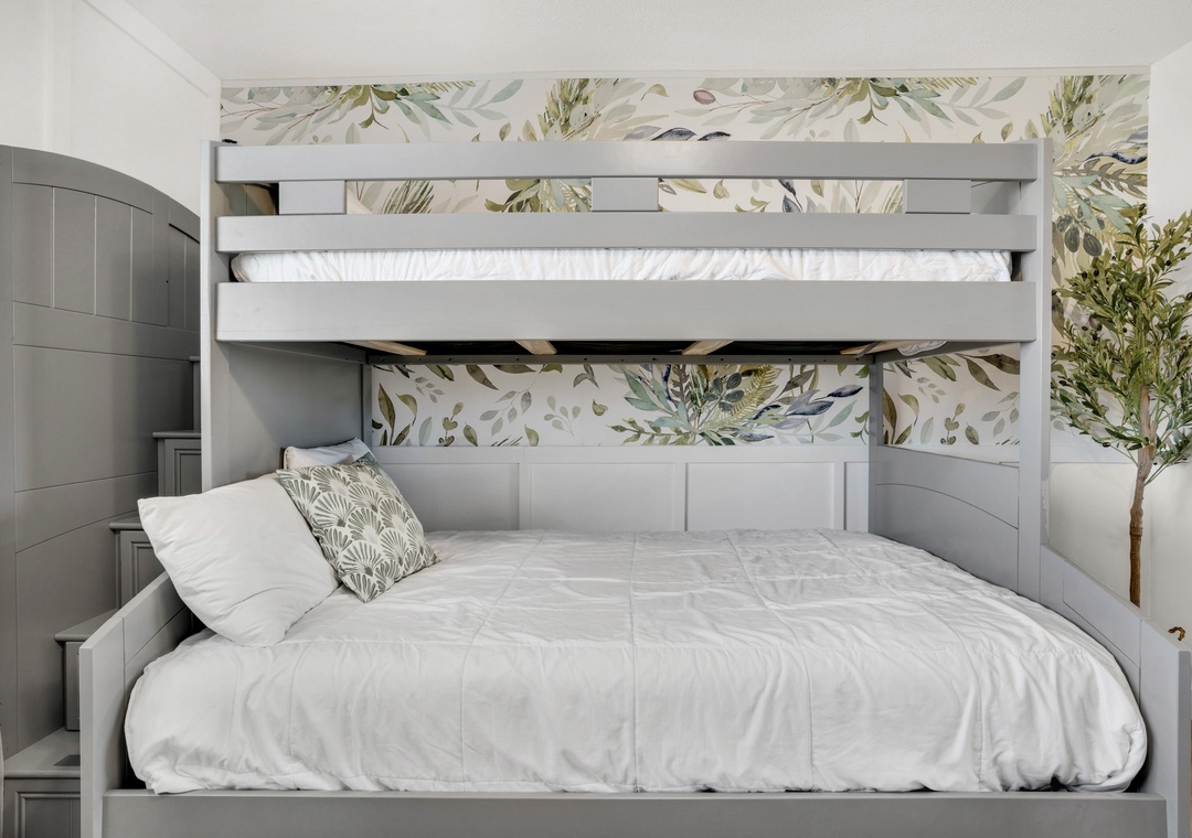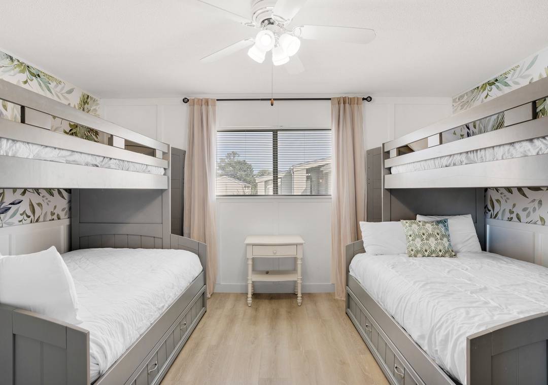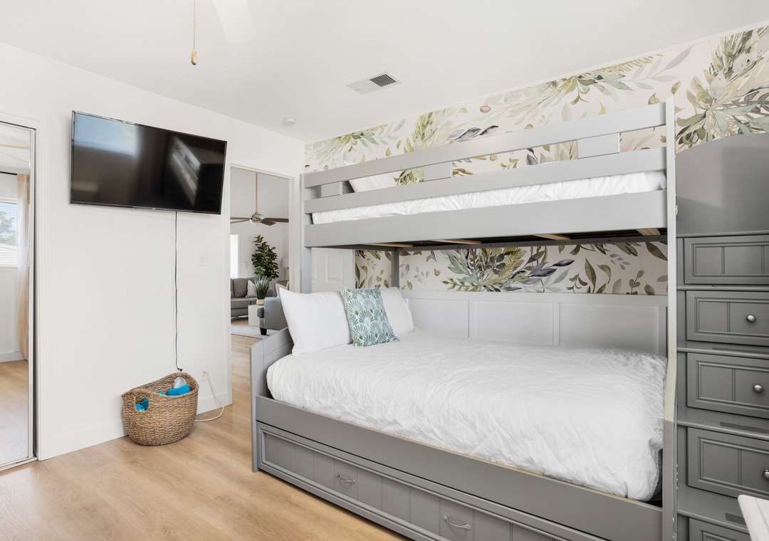 •The secondary bedroom offers a twin bed over full bunk bed and twin trundles.