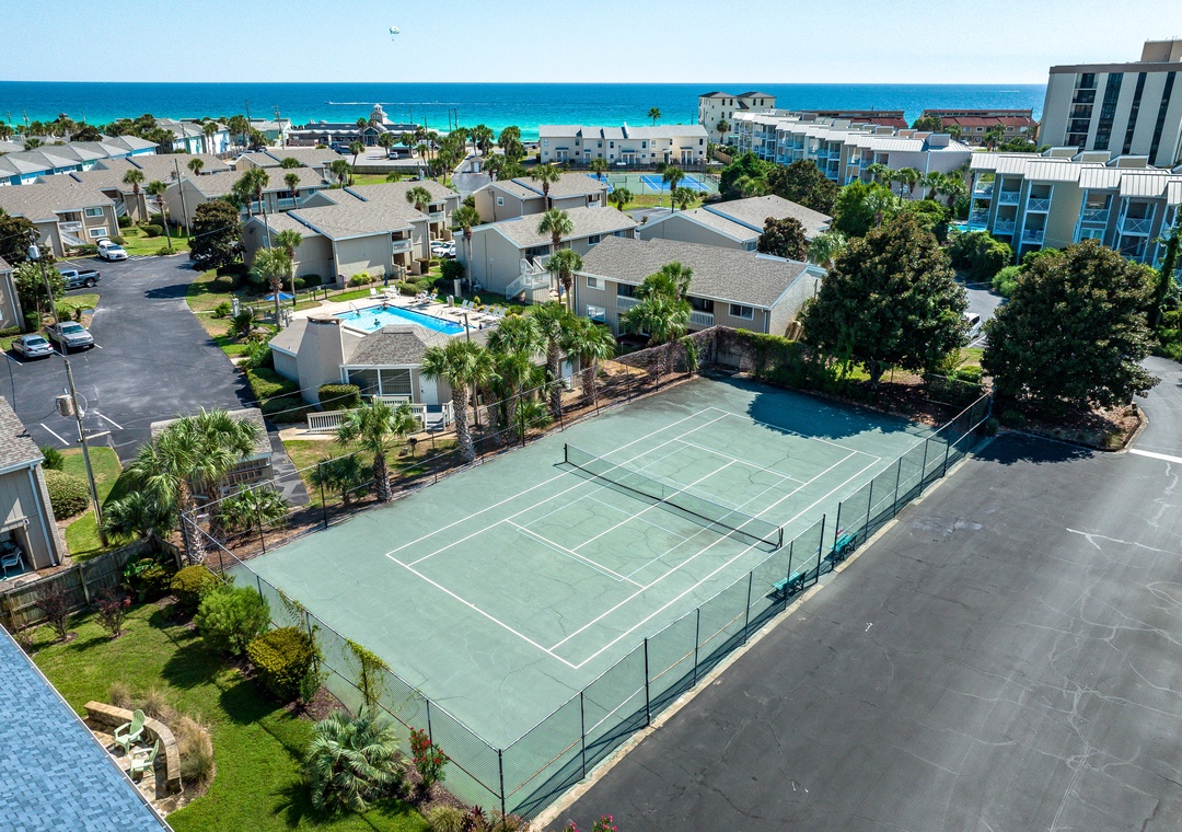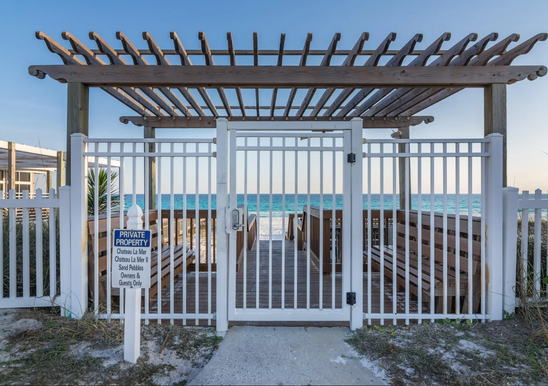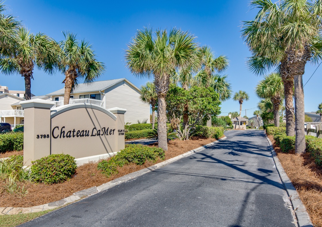 Chateau La Mer Condominiums is a low-density two-story complex across the street from the beach between Miramar and Destin. Vacation rentals at this complex feature a pool, tennis courts, outdoor grills, lawn area, clubhouse, and private access to the beach. It's located along a walking/bike trail. You can walk a short 150 yards to Captain Dave's on the Gulf and the gorgeous beaches across from Chateau La Mer.