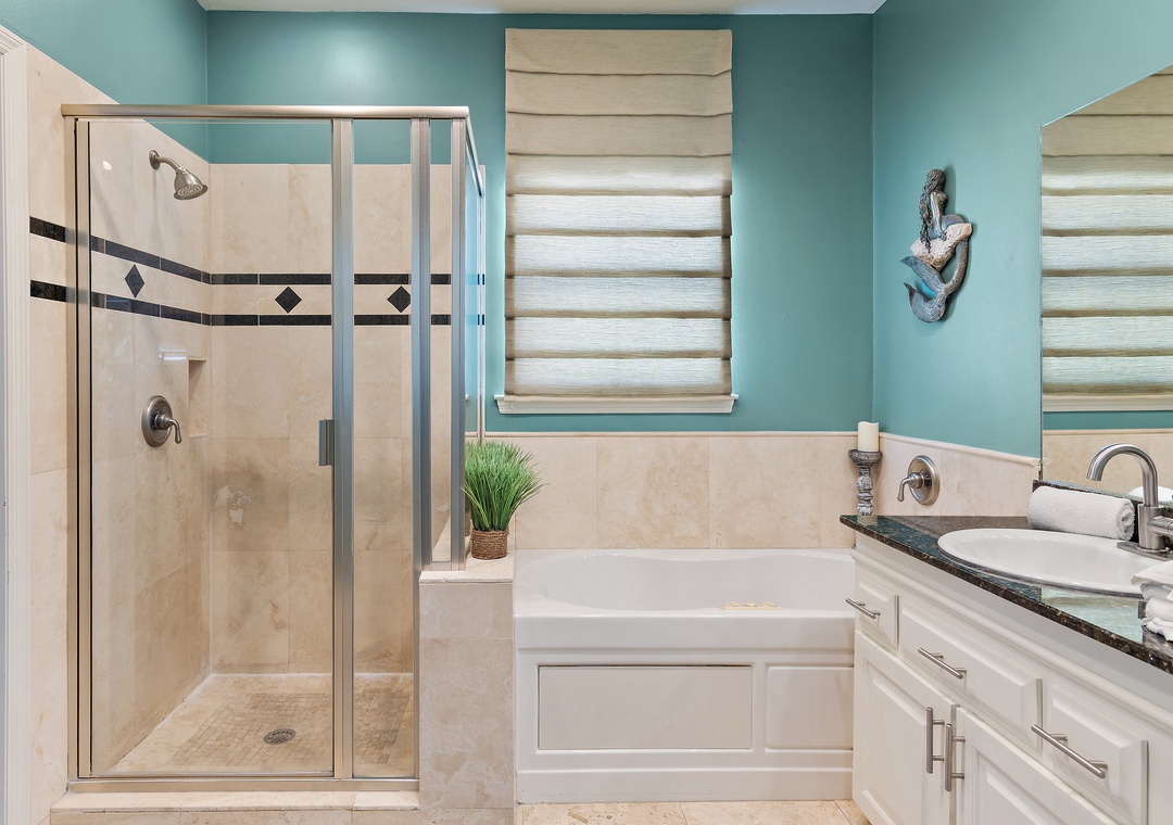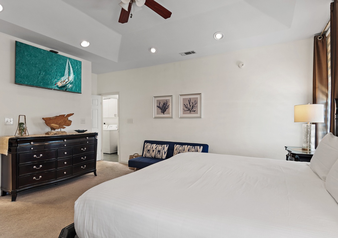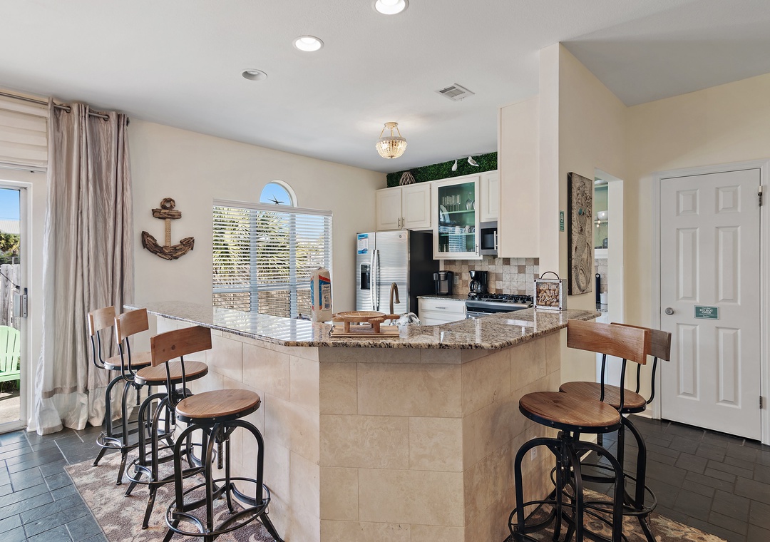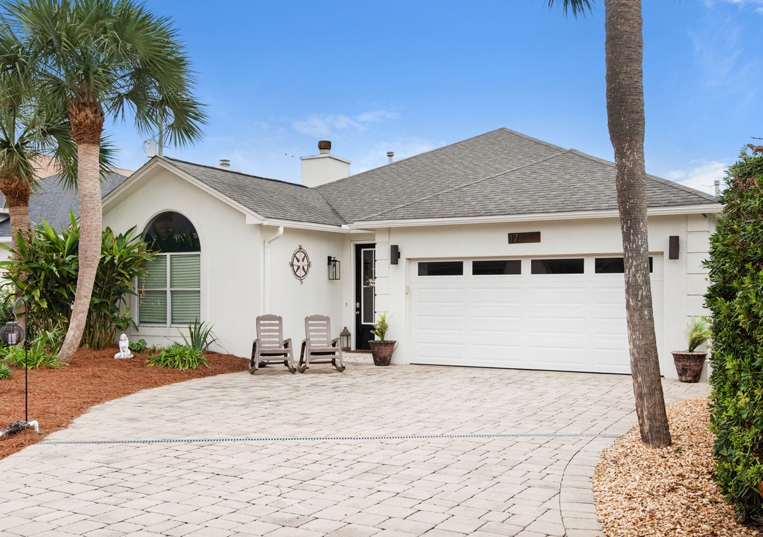 Start your vacation off right when you stay at Chic Retreat, a newly updated 3BR/2BA house in Port of Call, a quaint community in Miramar Beach. The open-concept layout features a large living area, dining area, and kitchen with a breakfast bar. You will fall in love with the calming colors and beach decor throughout the home. The master bedroom is highlighted by a king bed and an en-suite bathroom boasting a soaking tub, a separate walk-in shower, and double vanities. There are two guest bedrooms; one with a king bed and the other with 2 twin-over-twin bunks, as well as a sleeper sofa in the living room, allowing this home to comfortably accommodate 10 guests. There's plenty of room for your group to relax in the backyard around the firepit or hang out in the garage for a friendly game of cornhole or darts. Walk to the pool, just steps from your front door, or take the new 6-seater Low Speed Vehicle (LSV) to the beach!