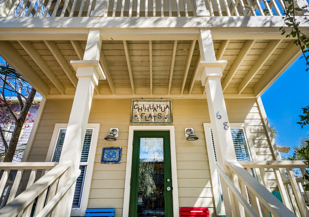 Chihuahua Flats is a 4BR, 3BA beach house located just off the quiet west end of Scenic Highway 30A in the gated community of Old Florida Village, between Blue Mountain Beach and Gulf Place. You’ll be steps from one of the community pools and about 700 yards to beach access! This home boasts an open floor plan with new flooring on the main level, comfortable furnishings, and a fully equipped kitchen with granite counters. There’s a queen guest bedroom and full bath on the main level. Upstairs, the 3 bedrooms include a gorgeous king master with en suite bath and balcony access, a bedroom with a queen bed, and a bunk room with 2 sets of twin bunk beds, and a sleeper sofa in living room sleeping a total of 12 guests comfortably! Splash around in the community pools, take a stroll to the beach, or hop on the bikes and check out Gulf Place Town Center only .5 mile away. Make Chihuahua Flats your next beach vacation tradition!