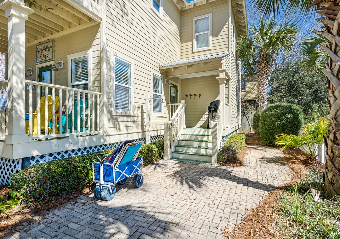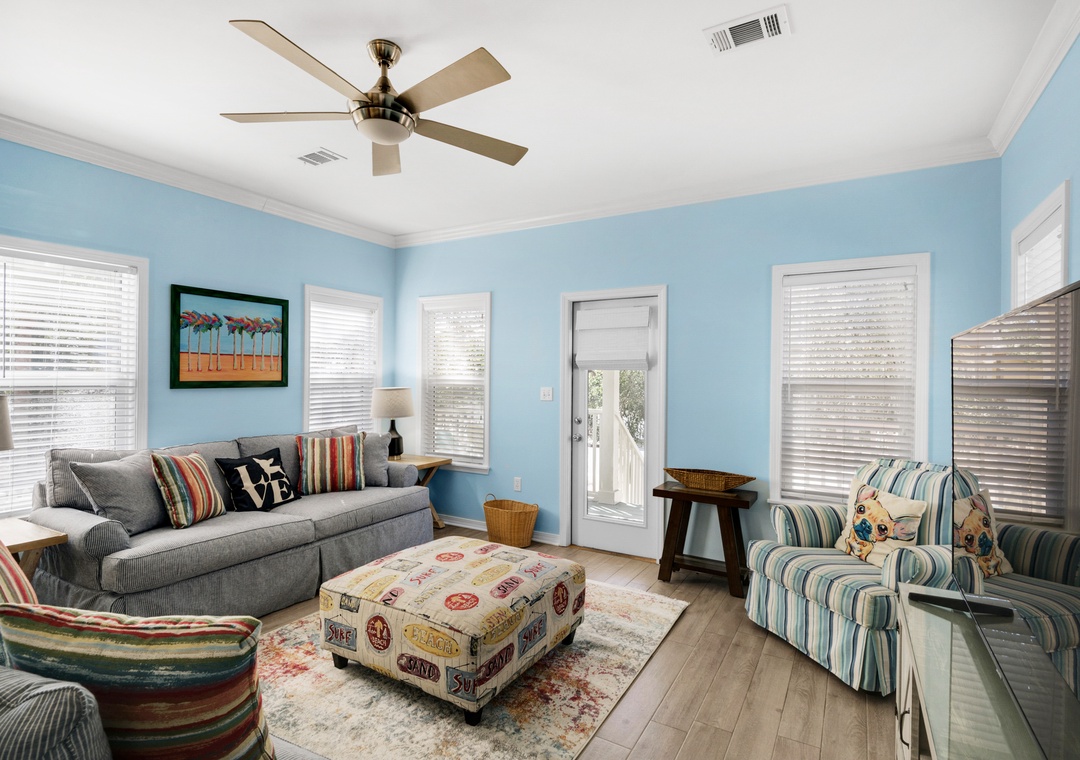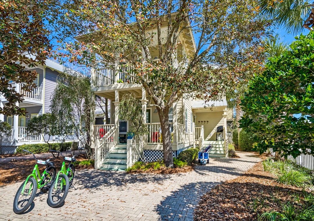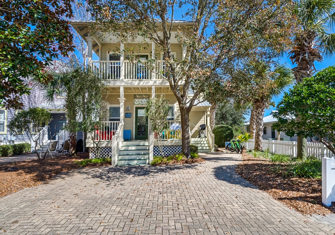 Old Florida Village is perfectly situated, with Grayton Beach, Seaside, Seacrest and Rosemary Beach just minutes away to the East. Located in an upscale area of Hwy 30A, this pristine house is perched in between Destin and Seaside. Just a 13-minute drive to Grand Boulevard Town Center with over 35 shops and restaurant as well as the all-new state-of-the-art Boulevard 10 Movie Theater. Bike down to Blue Mountain Creamery for a cone or meander along the miles of trails!