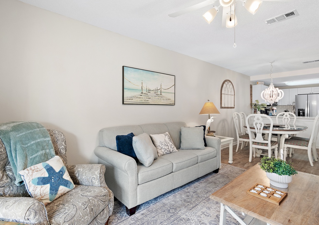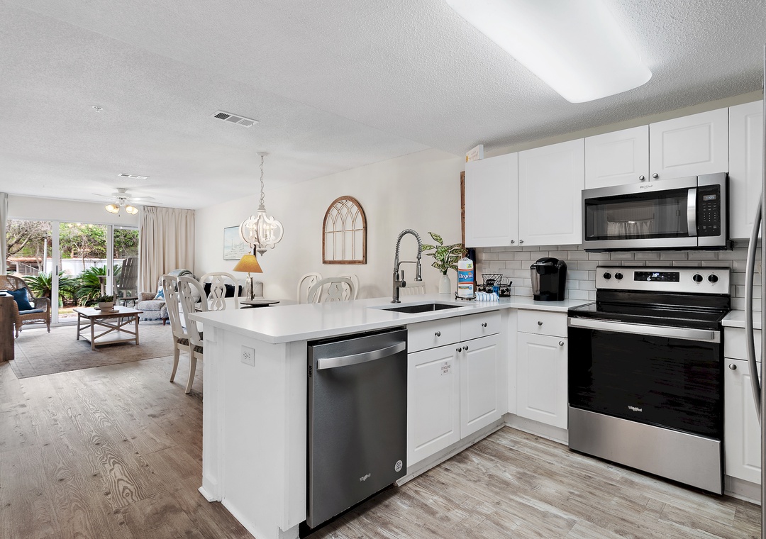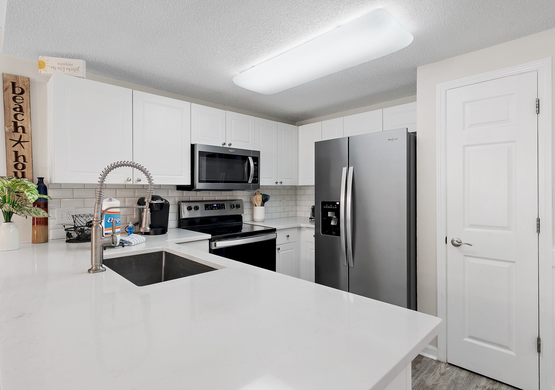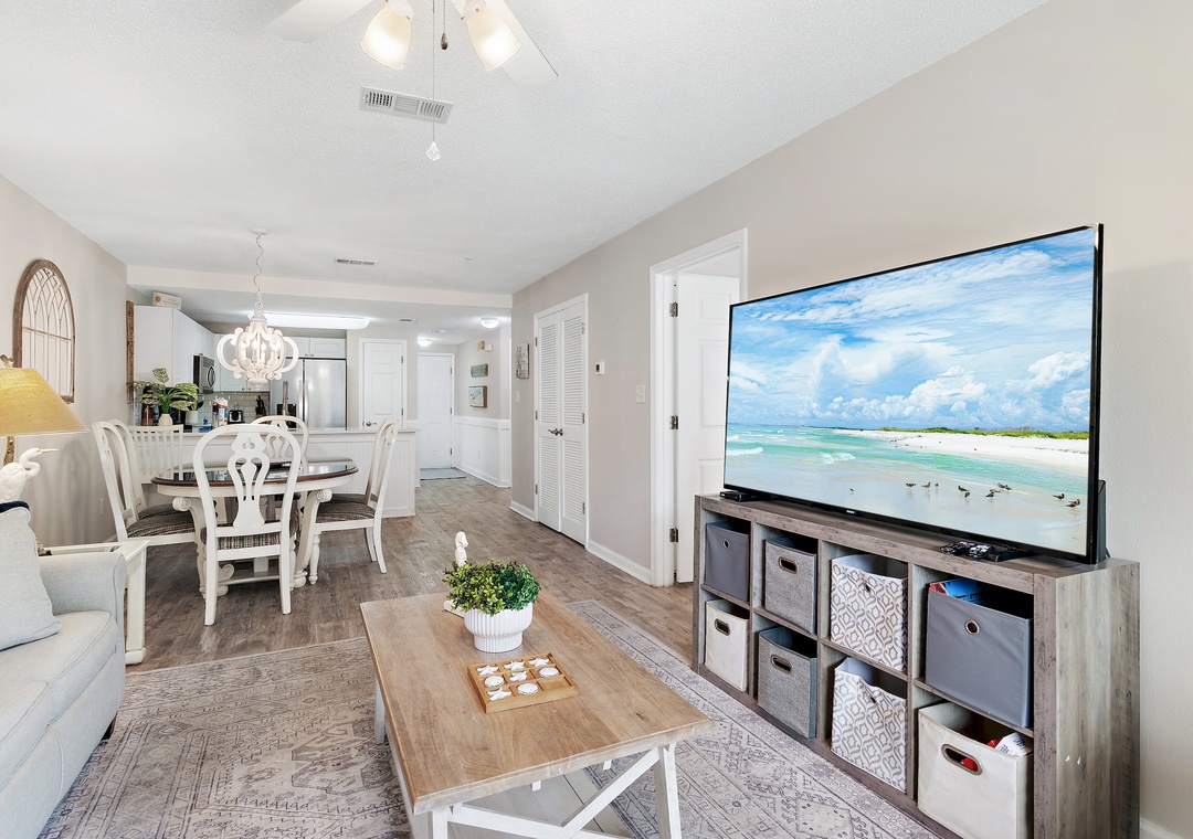 Your perfect beach escape awaits at Ciboney 1013! This recently remodeled 2-bedroom, 2-bath condo is just steps from the private beach access, making it the perfect place for your family to relax, unwind, and enjoy time together. The Gulf-view master suite features a king bed, flat-screen TV, and a spacious en-suite bathroom with a shower. A large balcony off the master bedroom is perfect for sipping your morning coffee or relaxing with an evening drink while taking in the coastal breeze. The second bedroom offers a queen bed, a flat-screen TV, and convenient access to a guest bathroom with a shower/tub combo. The living room features a flat-screen TV and beautiful Gulf views, creating a comfortable space to gather after a day at the beach. Recently renovated, the condo includes new granite countertops, updated kitchen appliances, refreshed bathrooms, and new flooring. The well-equipped kitchen has everything you need to prepare a delicious meal during your stay. Start making lasting beach memories at Ciboney 1013!
