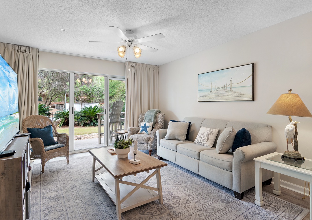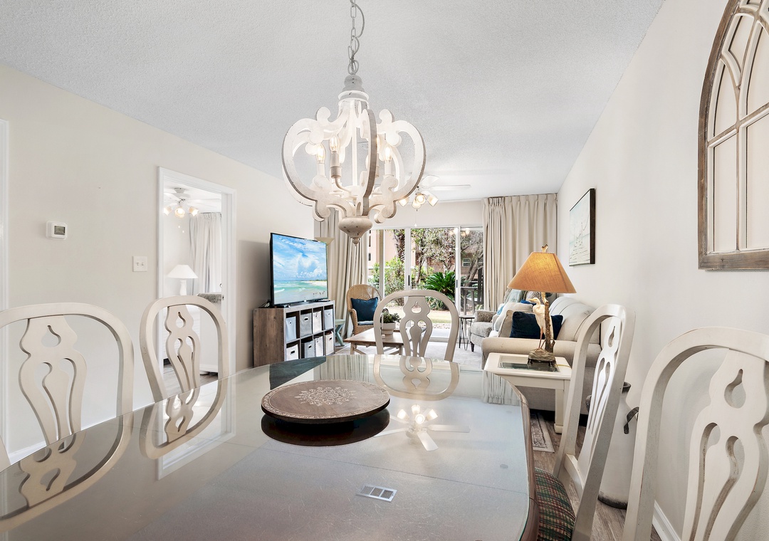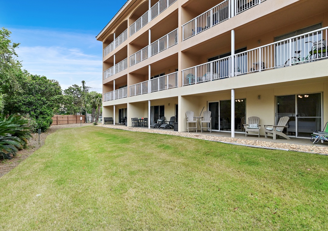 Ciboney Condominiums is a complex of vacation rentals just across the street from Miramar Beach. Its amenities include gated beach access, a seasonally heated pool, two lighted tennis courts, an outside rinsing facility, and a grilling area. You'll be a block from world-famous Pompano Joe's, where you can get the freshest fish and a tropical drink right on the beach. Jet ski, parasailing, and paddleboard rentals are located on the beach there as well.