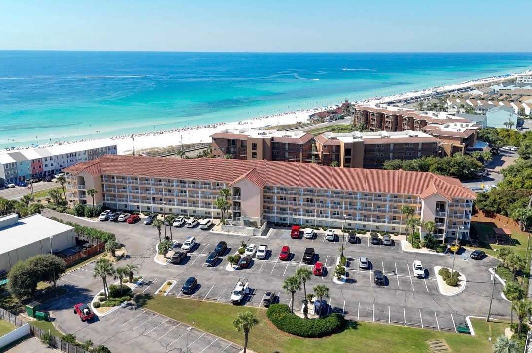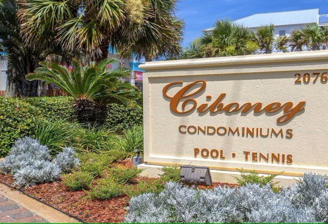 Ciboney Condominiums is a complex of vacation rentals just across the street from Miramar Beach. Its amenities include gated beach access, a seasonally heated pool, two lighted tennis courts, an outside rinsing facility, and a grilling area. You'll be a block from world-famous Pompano Joe's, where you can get the freshest fish and a tropical drink right on the beach. Jet ski, parasailing, and paddleboard rentals are located on the beach there as well.