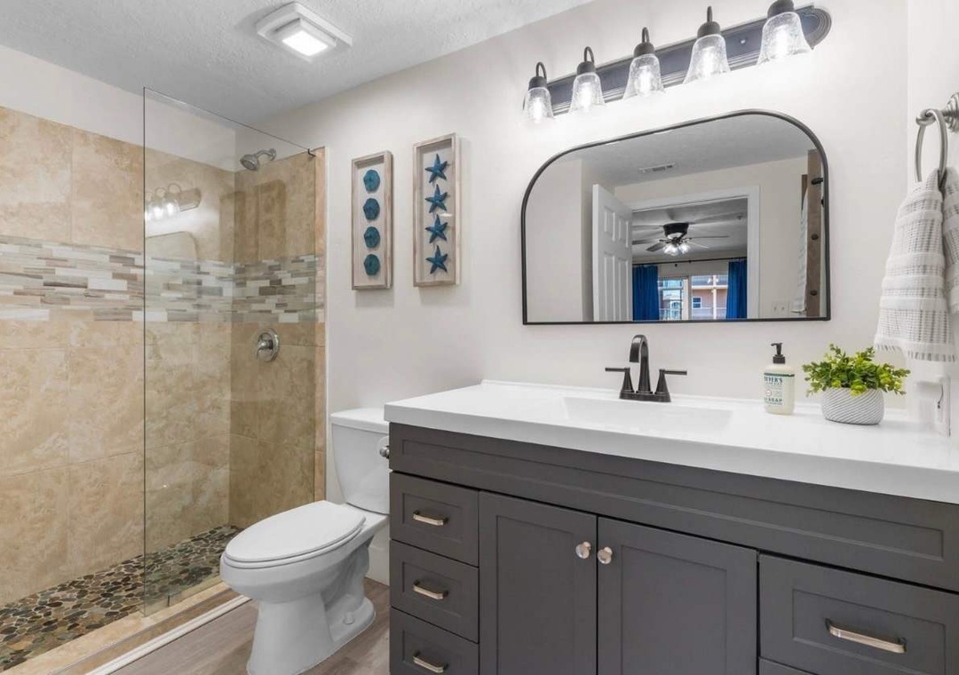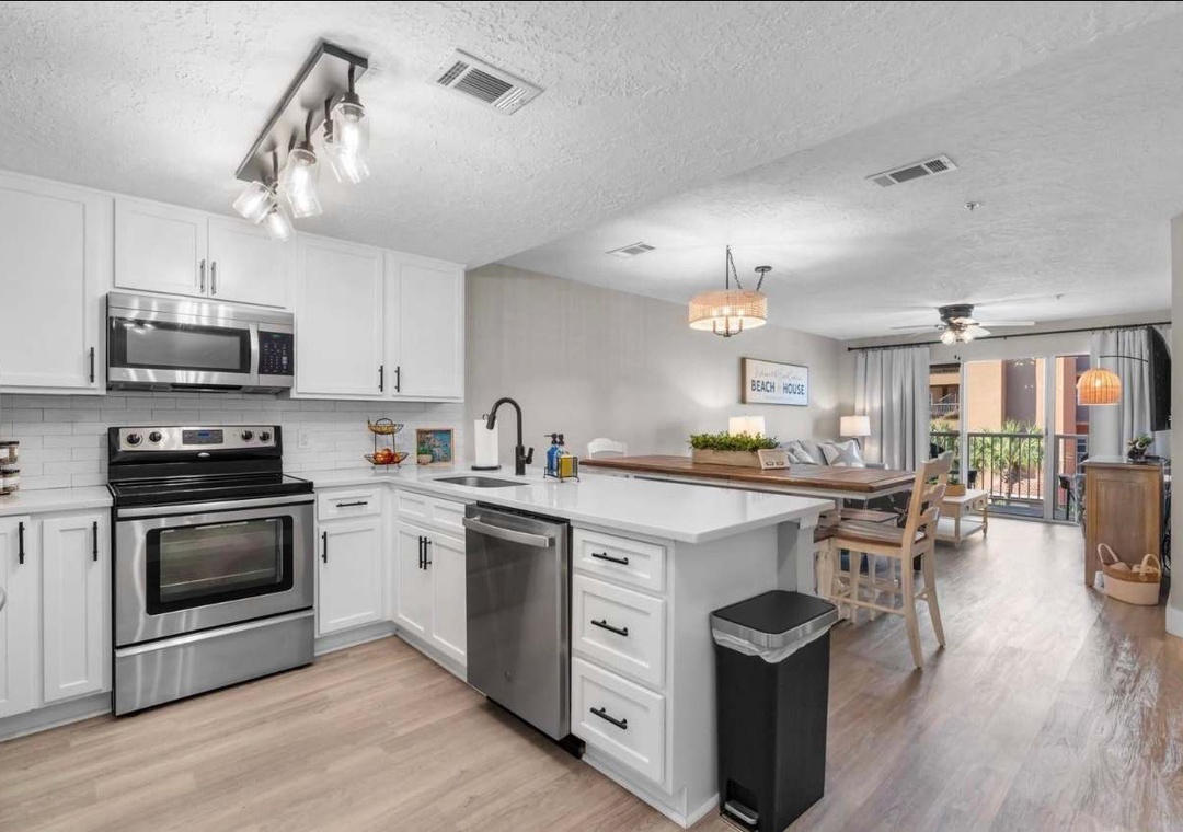 Your Perfect Beach Escape Awaits at Ciboney 3008! This recently remodeled 3-bedroom, 2-bath condo is just steps from the private beach access, offering the perfect setting for your family to relax, unwind, and enjoy each other’s company. The master suite features a king bed, flat-screen TV, and a spacious in-suite bathroom with a shower. A large balcony flows off the master bedroom, ideal for sipping your morning coffee or winding down with an evening drink. The second bedroom features a queen bed with a flat-screen TV and access to a guest bathroom with a shower/tub combo.. The third bedroom has twin bunk beds. The living room includes a flat-screen TV with all updated furniture. The condo has been recently renovated with new granite countertops, updated kitchen appliances, refreshed bathrooms, and new flooring.