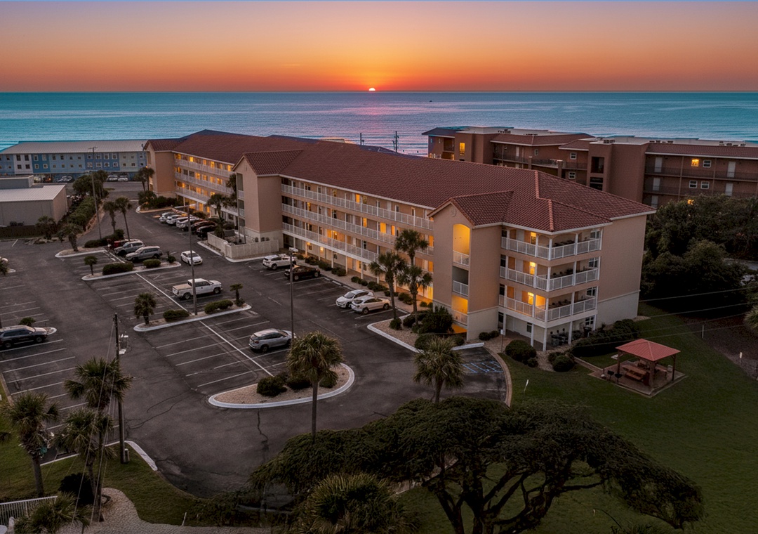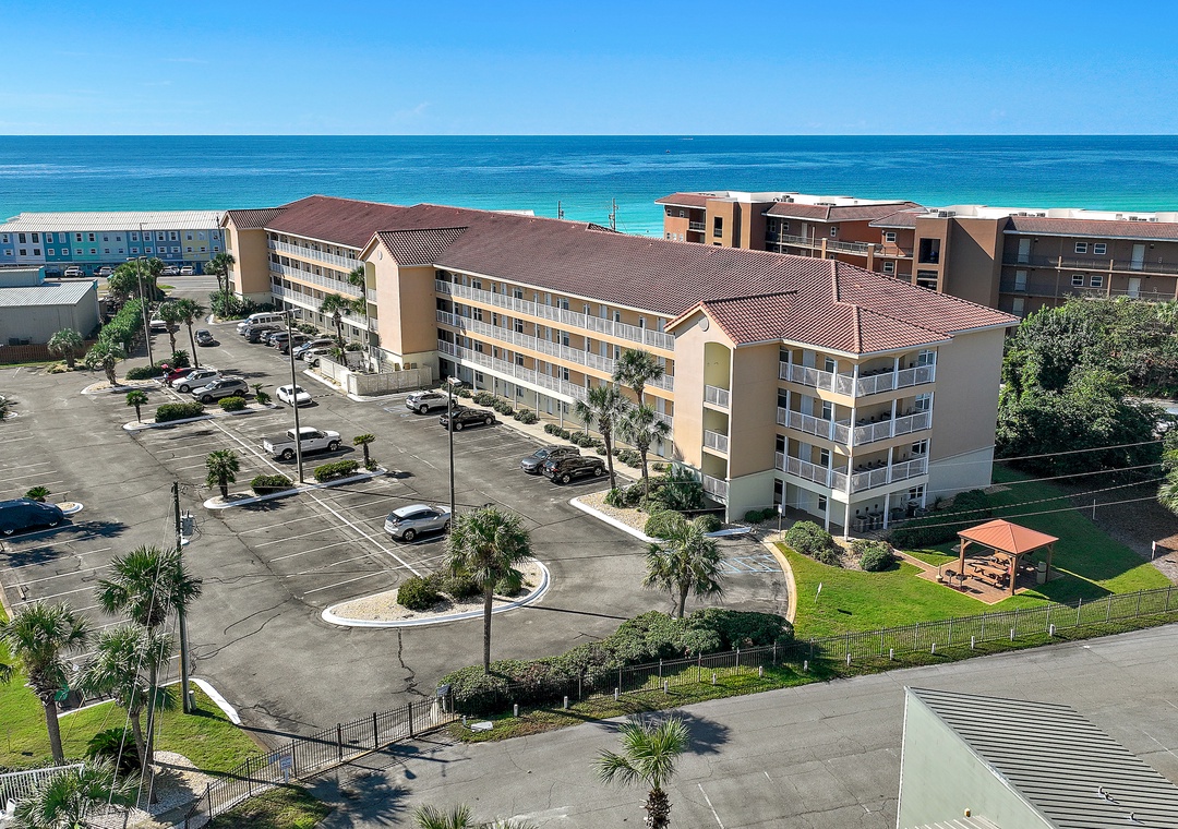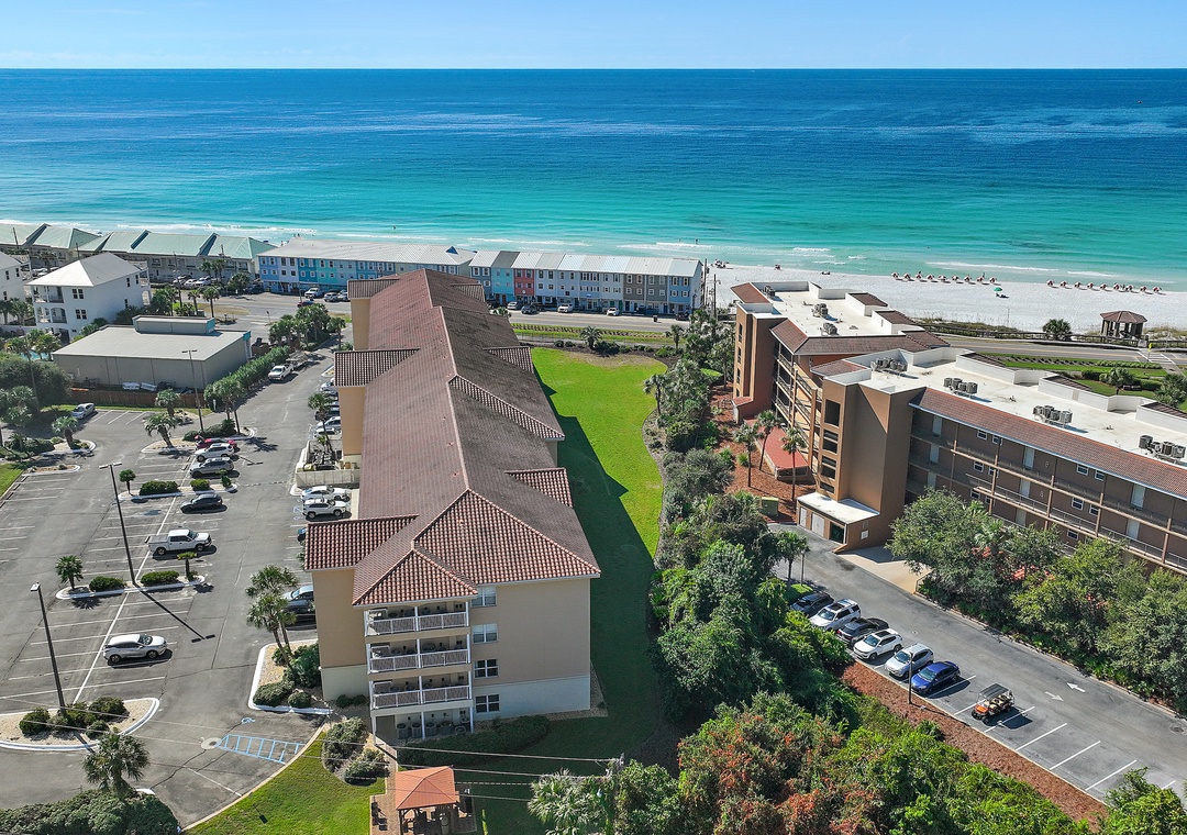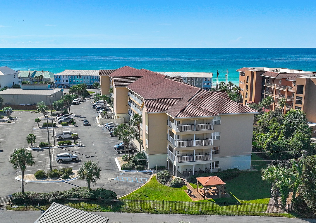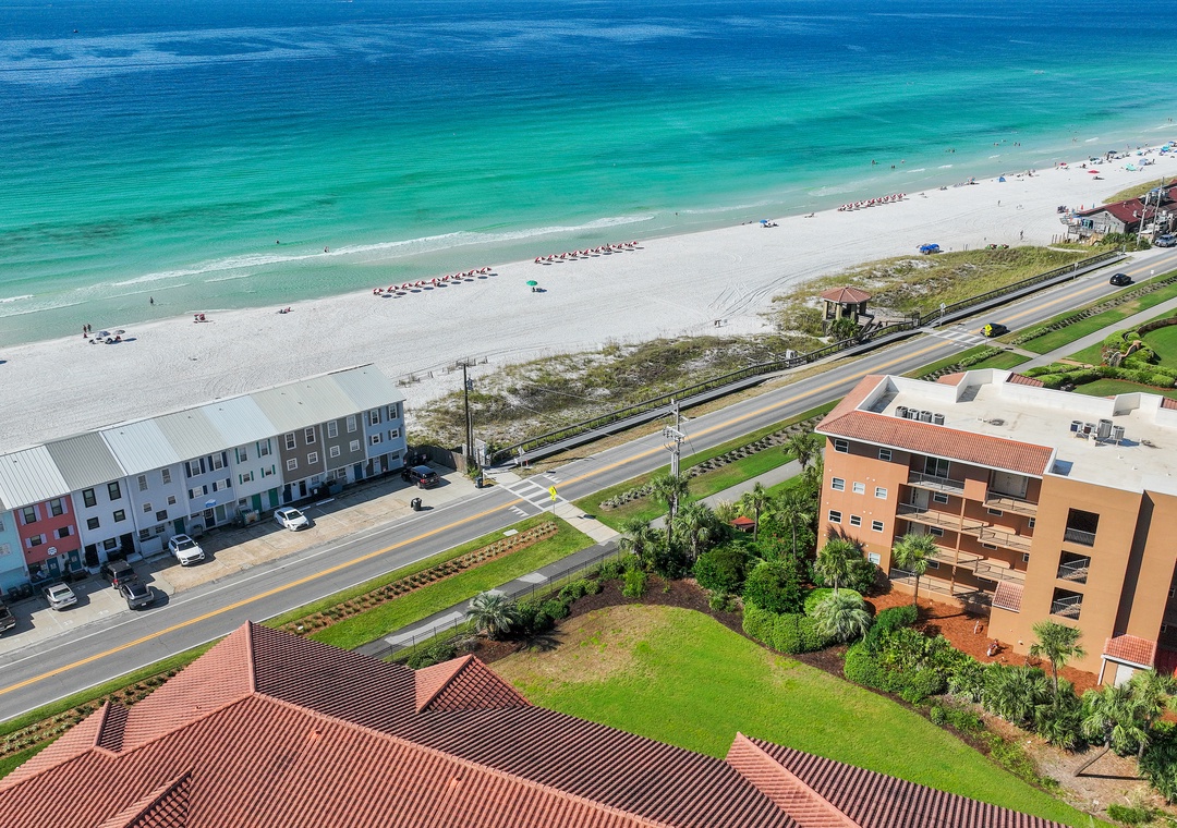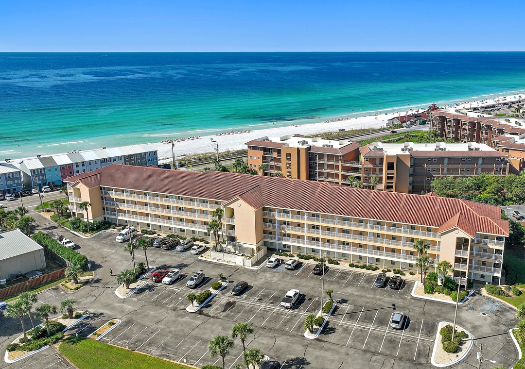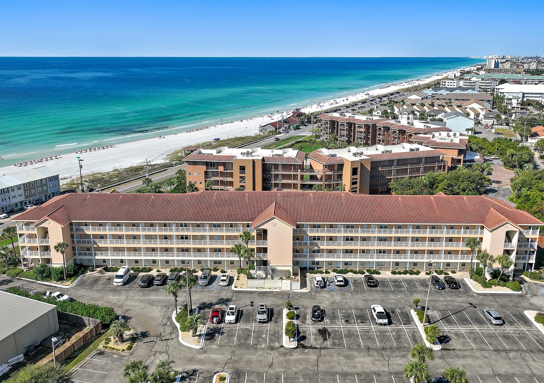 Ciboney Condominiums is a complex of vacation rentals just across the street from Miramar Beach. Its amenities include gated beach access, a seasonally heated pool, two lighted tennis courts, an outside rinsing facility, and a grilling area. You'll be a block from world-famous Pompano Joe's, where you can get the freshest fish and a tropical drink right on the beach. Jet ski, parasailing, and paddleboard rentals are located on the beach there as well.