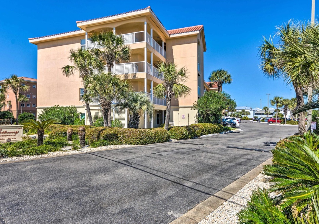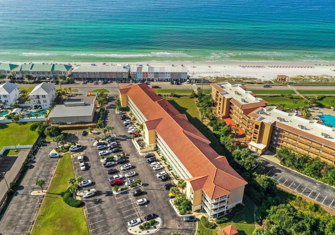 Ciboney Condominiums is a complex of vacation rentals just across the street from Miramar Beach. Its amenities include gated beach access, a seasonally heated pool, two lighted tennis courts, an outside rinsing facility, and a grilling area. You'll be a block from world-famous Pompano Joe's, where you can get the freshest fish and a tropical drink right on the beach. Jet ski, parasailing, and paddleboard rentals are located on the beach there as well.