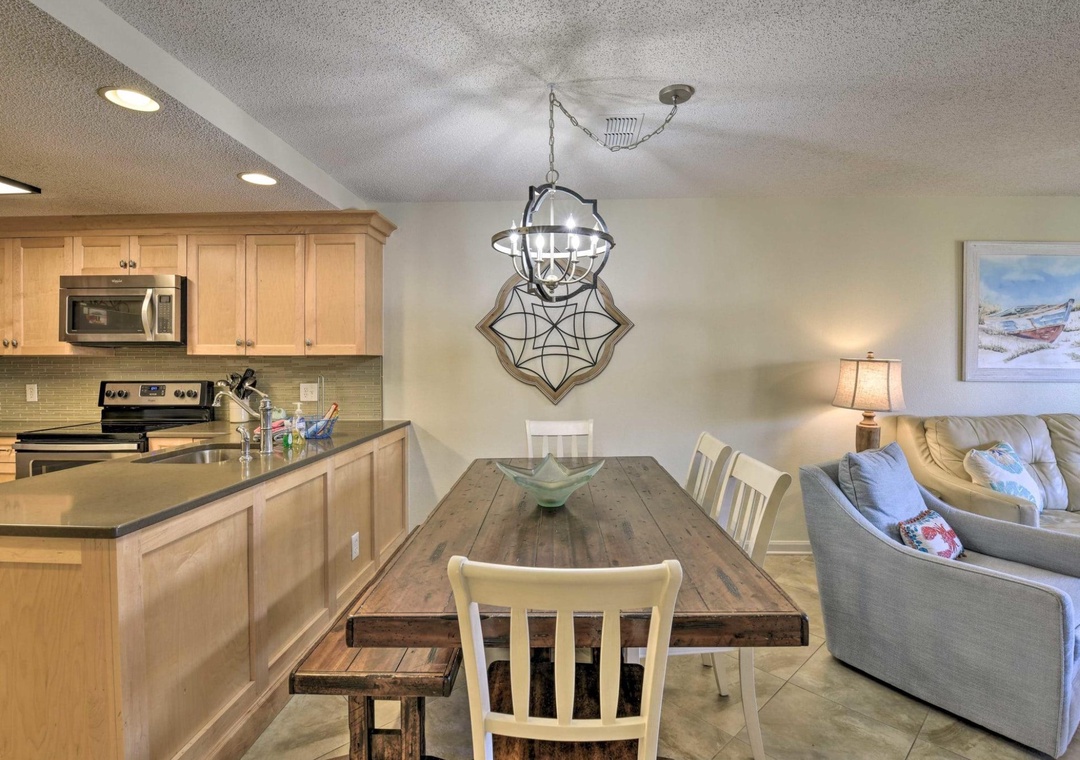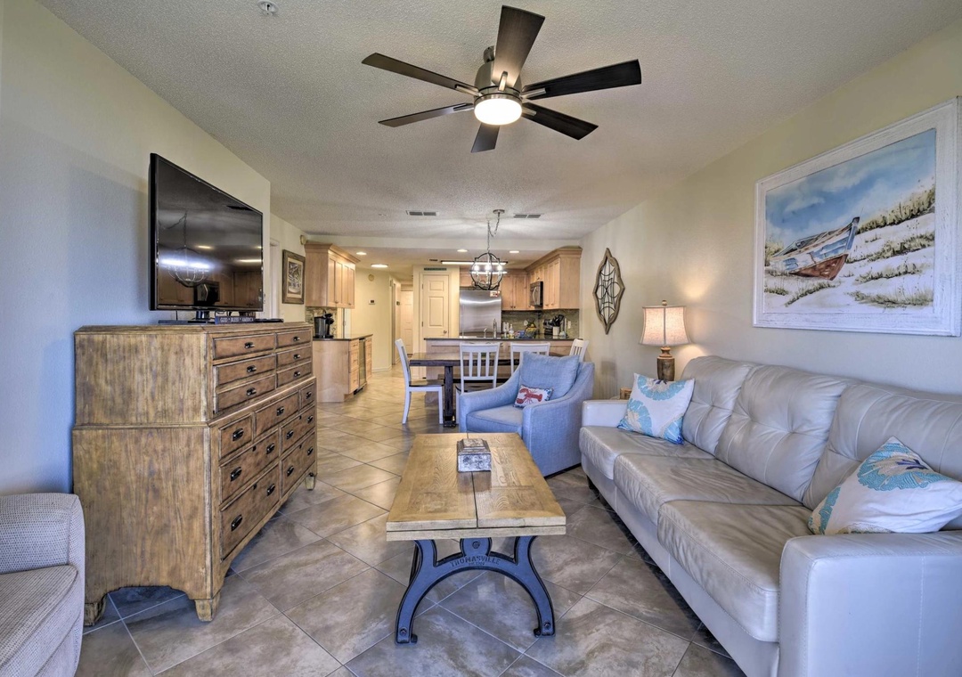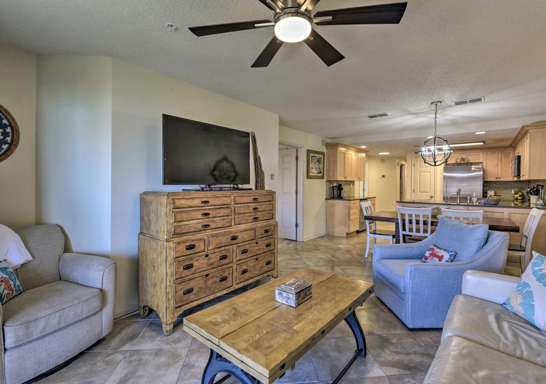 Your Perfect Beach Escape Awaits at Ciboney 4008! This recently remodeled 3-bedroom, 2-bath condo is just steps from the private beach access, offering the perfect setting for your family to relax, unwind, and enjoy each other’s company. The master suite features a king bed, flat-screen TV, and a spacious in-suite bathroom with a shower. A large balcony flows off the master bedroom, ideal for sipping your morning coffee or winding down with an evening drink. The second bedroom features a queen bed with a flat-screen TV and access to a guest bathroom with a shower/tub combo.. The third bedroom has twin bunk beds. The living room includes a flat-screen TV with all updated furniture. The condo has been recently renovated with new granite countertops, updated kitchen appliances, refreshed bathrooms, and new flooring.
