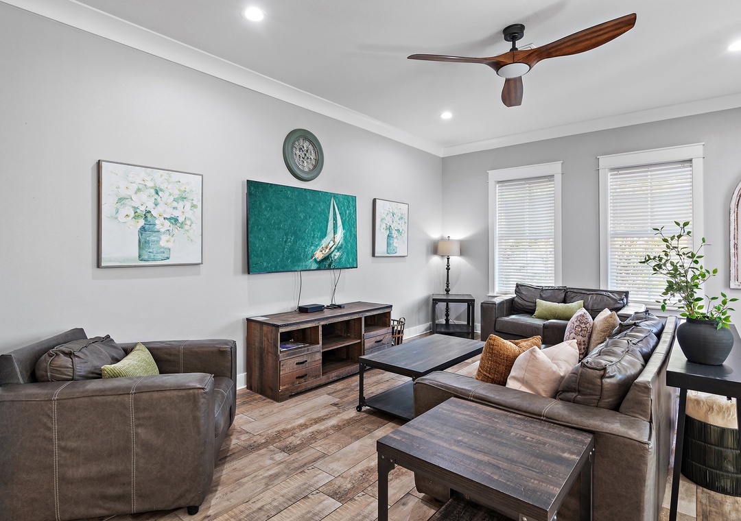 Welcome to Coastal Grace! Nestled within the gated community of Emerald Waters Village, this charming beach house is ready to welcome you for the perfect coastal getaway. With 4 bedrooms and 3.5 baths, Coastal Grace offers contemporary open concept living designed for comfort and connection. The spacious living area is ideal for family gatherings, while meals can be enjoyed at the breakfast bar or around the dining table with seating for eight. The chefâs kitchen is fully equipped and generously sized, perfect for preparing your favorite beachside dishes. This beautiful home features two master suites, one conveniently located on each floor. Upstairs, youâll also find a king guest bedroom and a fun bunk room that kids will love, featuring built-in bunks with two full-size bunk beds and a flat-screen TV, and a queen sleeper sofa in the living room. In total, the home comfortably accommodates up to 14 guests. Step outside to the backyard, where you can unwind, grill, and enjoy the coastal breeze. Savor your morning coffee from your private balcony while taking in the tranquil views. A short 500-yard stroll brings you to the gated beach access, or you can take a dip in one of two neighborhood pools, with the North Pool seasonally heated for year-round enjoyment. Whether youâre here for relaxation or adventure, Coastal Grace promises a truly unforgettable beach experience!