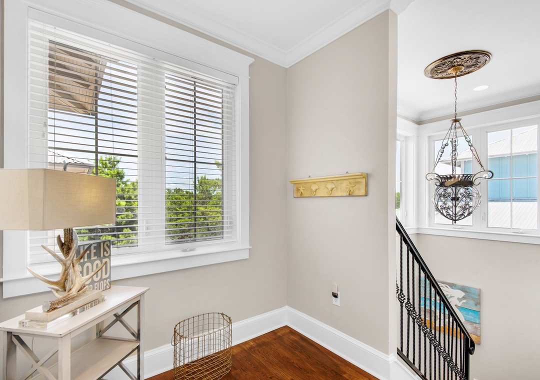 Amy, we appreciate you taking the time to provide us with some feedback regarding your stay in Coastal Joy on 30A, a spacious 5-bed/4.5-bath home in the beautiful Highland Parks community of Blue Mountain Beach. We are very happy to know that you loved your time at this property with a very well stocked kitchen, well put together rooms, and great bikes and a golf cart. We will forward your suggestions for the blinds and exterior to property managers. Thank you for choosing Real Joy.Real Joy staff