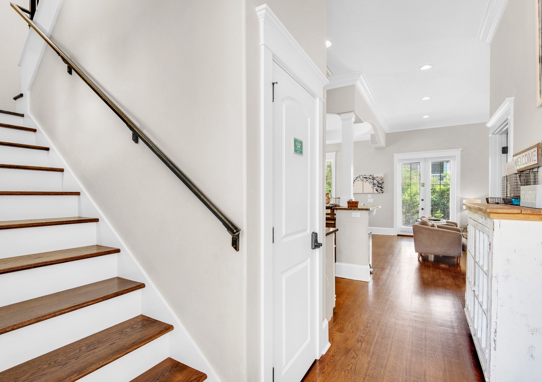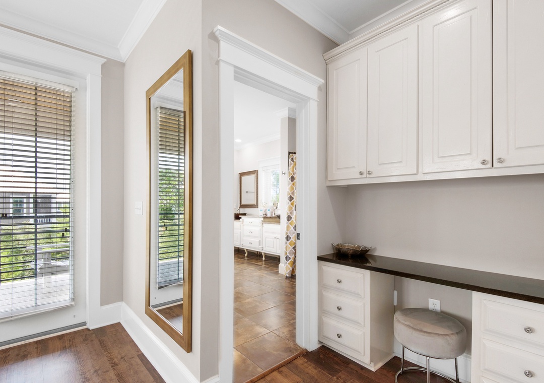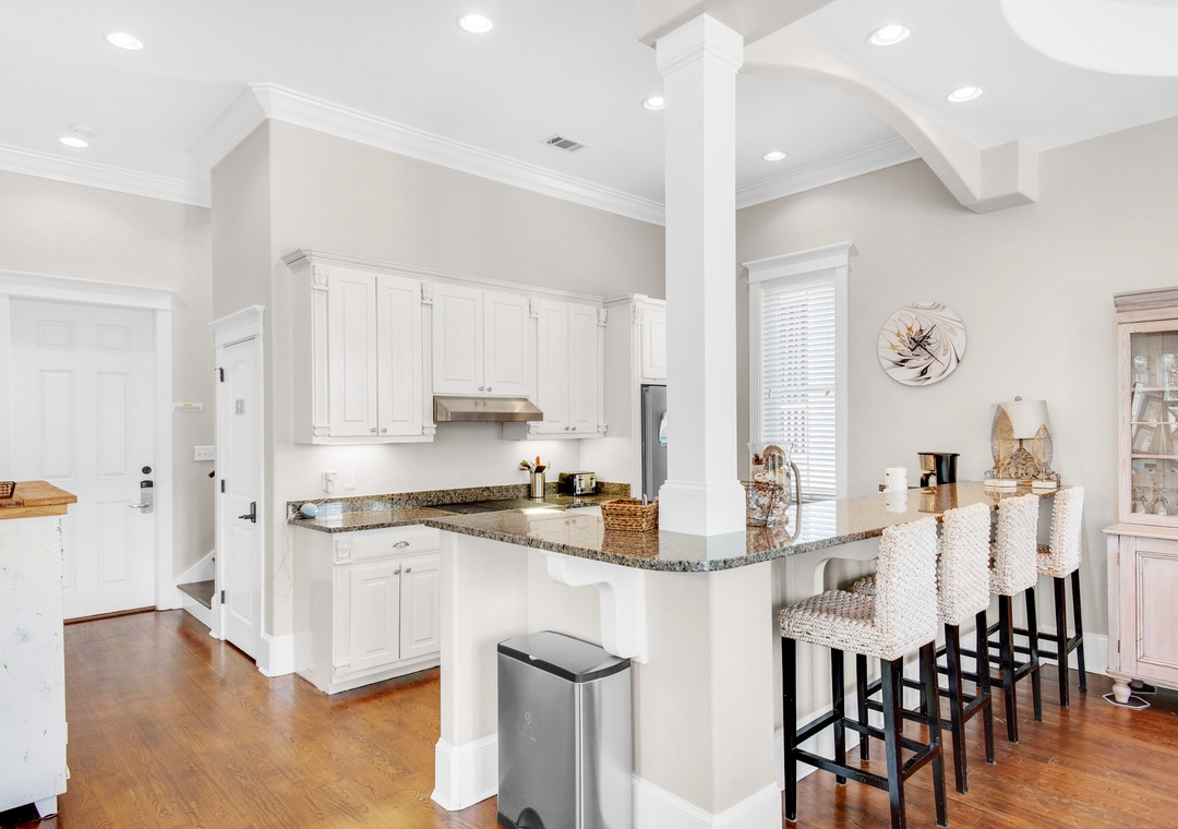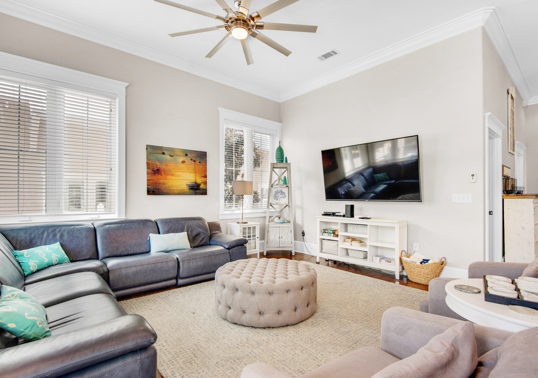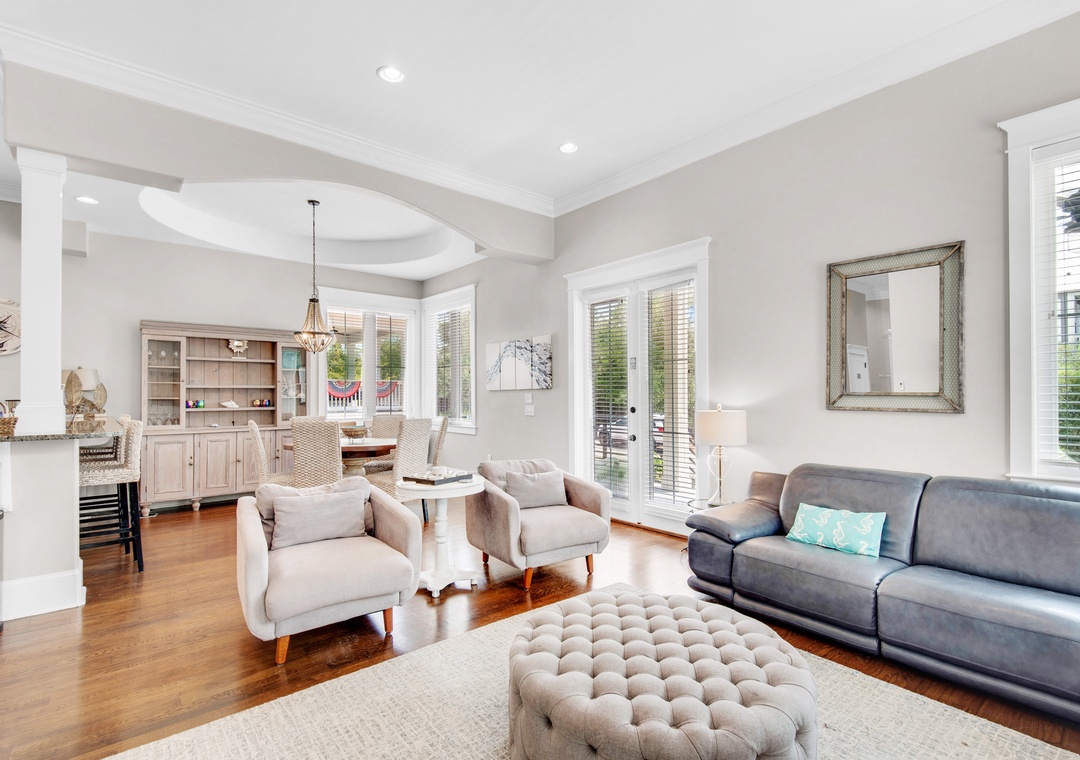 Coastal Joy on 30A is a gorgeous 5BR/4.5BA home in the Highland Parks community of Blue Mountain Beach, just off Hwy 30A. Under 1 mile to the beach, this stunning home features a bright, airy feel with gorgeous hardwood flooring, spacious patio and balcony, 12ft ceilings and custom millwork and cabinetry. When not enjoying the fabulous local restaurants nearby, fire up a home-cooked meal on the Viking gas stove! The main house offers 4 spacious bedrooms and 3.5 baths. Each bedroom features a flat screen TV, and the 2nd floor has new wood floors throughout. Additionally, there is a carriage house studio above the garage with a private entrance, a queen bed, full bathroom, and kitchenette. The spacious driveway and turnaround space allows ample room for everyone. Relax on the shaded porch and balcony in Adirondack chairs or take a short walk over to the pool pavilion for the world-class pool, viewing tower, grilling and entertainment. The new, burgundy 6-Seater Golf Cart is street legal and a huge convenience for this neighborhood. You can head to the beach or grab a treat at the Blue Mountain Beach Creamery!