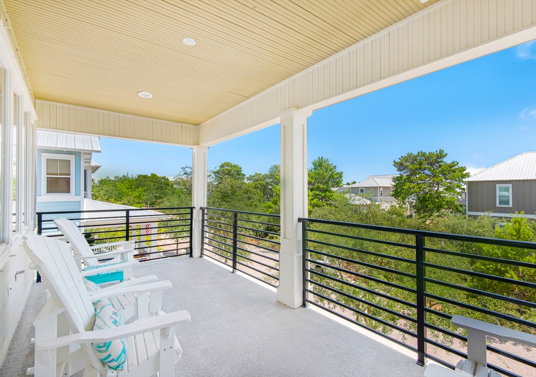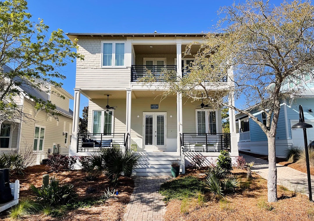 Coastal Joy on 30A is a gorgeous 5BR/4.5BA home in the Highland Parks community of Blue Mountain Beach, just off Hwy 30A. Under 1 mile to the beach, this stunning home features a bright, airy feel with gorgeous hardwood flooring, spacious patio and balcony, 12ft ceilings and custom millwork and cabinetry. When not enjoying the fabulous local restaurants nearby, fire up a home-cooked meal on the Viking gas stove! The main house offers 4 spacious bedrooms and 3.5 baths. Each bedroom features a flat screen TV, and the 2nd floor has new wood floors throughout. Additionally, there is a carriage house studio above the garage with a private entrance, a queen bed, full bathroom, and kitchenette. The spacious driveway and turnaround space allows ample room for everyone. Relax on the shaded porch and balcony in Adirondack chairs or take a short walk over to the pool pavilion for the world-class pool, viewing tower, grilling and entertainment. The new, burgundy 6-Seater Golf Cart is street legal and a huge convenience for this neighborhood. You can head to the beach or grab a treat at the Blue Mountain Beach Creamery!