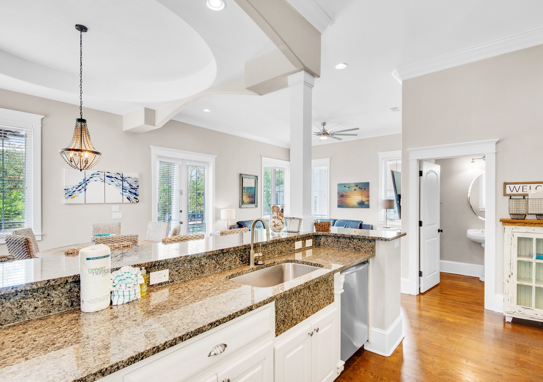 Don’t let a wheelchair keep a family member or friend from joining you at the beach. Luxury Coastal Joy on 30A has been updated to be wheelchair accessible. Guests will enjoy easy access to the home and front porch with the newly installed wheelchair accessibility ramp. The first floor bath has been converted to a walk in shower that a wheelchair can easily access. Bring the whole family and make vacation memories of a lifetime at Coastal Joy on 30A!