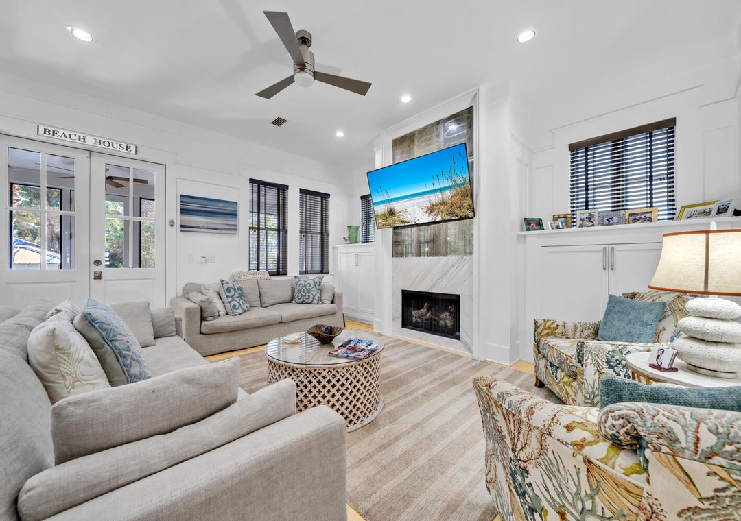 Come to Coastal Serenity on 30A, a gorgeous 4 bedroom, 4 bath, home in the luxury community of Cypress Dunes. Coastal Serenity on 30A has an open living area with 10' ceilings, solid wood floors, a gas fireplace, and an abundance of natural light. Create a home-cooked meal in the professional-grade kitchen with lavish marble countertops, a large gas range, and stainless steel appliances. There's also a second living area with a queen sleeper sofa on the first floor that's the perfect spot for the kids to hang out. With a king bed in the Master Suite, a king guest bedroom, a queen guest bedroom, and a bedroom with a twin bunkbed, this lovely beach home sleeps 8 guests comfortably. You will love watching the sunset from the large front porch, and there's also a screened-in back patio that's surrounded by nature. Ride the bikes to the sparkling community pools, get some fun exercise at the tennis courts, take a leisurely stroll through the nature trails or take the golf cart to the beach. Come make Coastal Serenity on 30A, your next family vacation tradition!