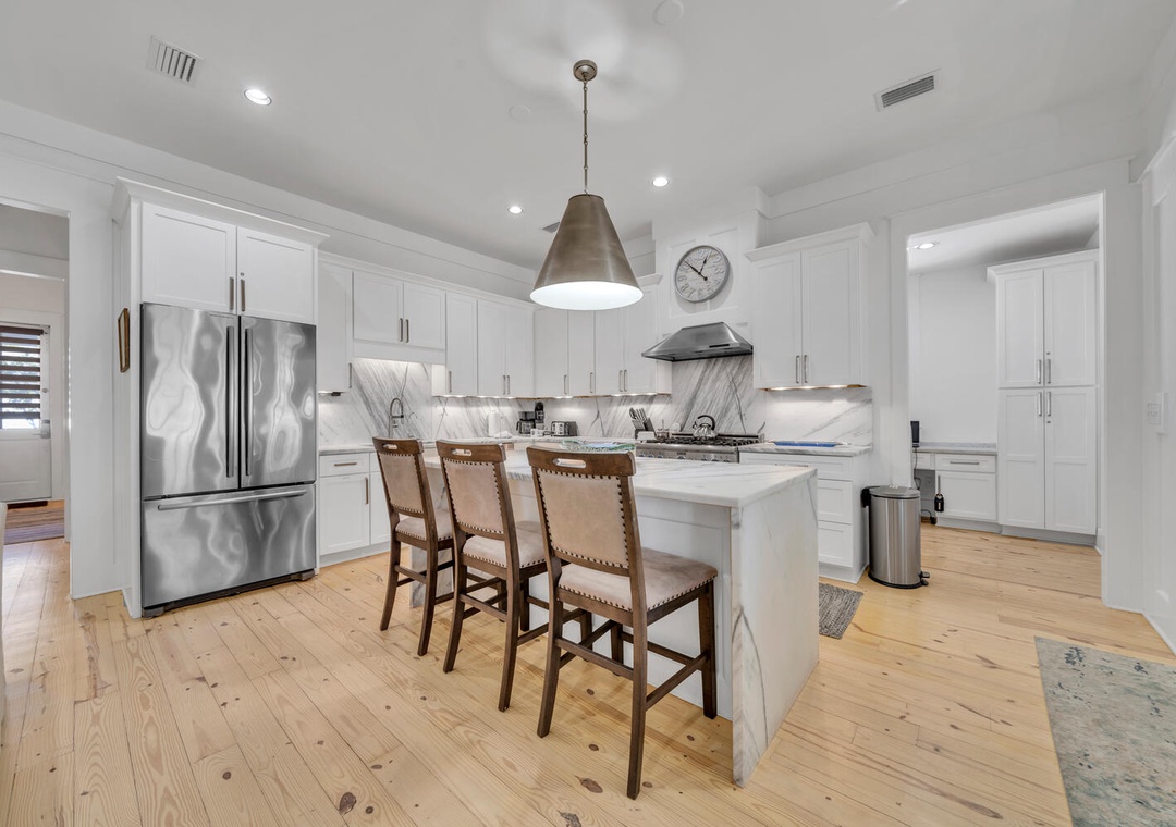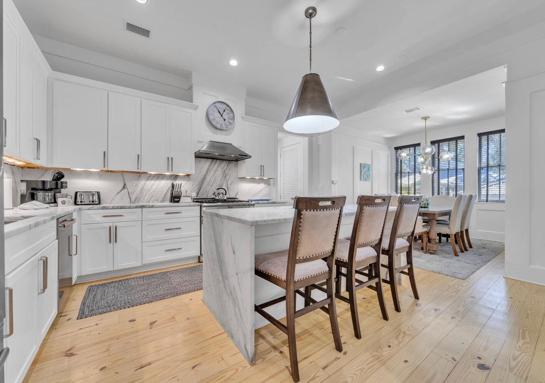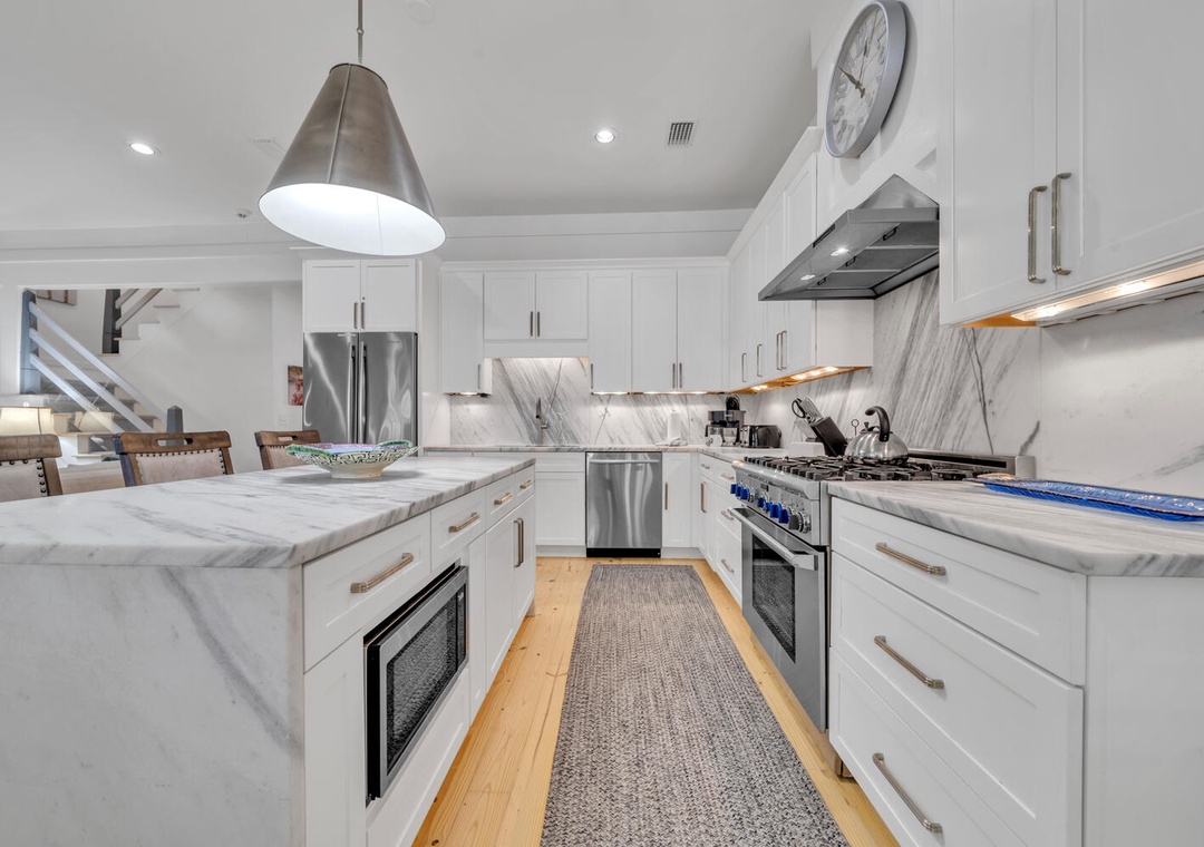 * Wood flooring and a professional-grade kitchen with marble counters, 6 burner gas stove, and top-grade stainless appliances. Everything a chef would enjoy!
